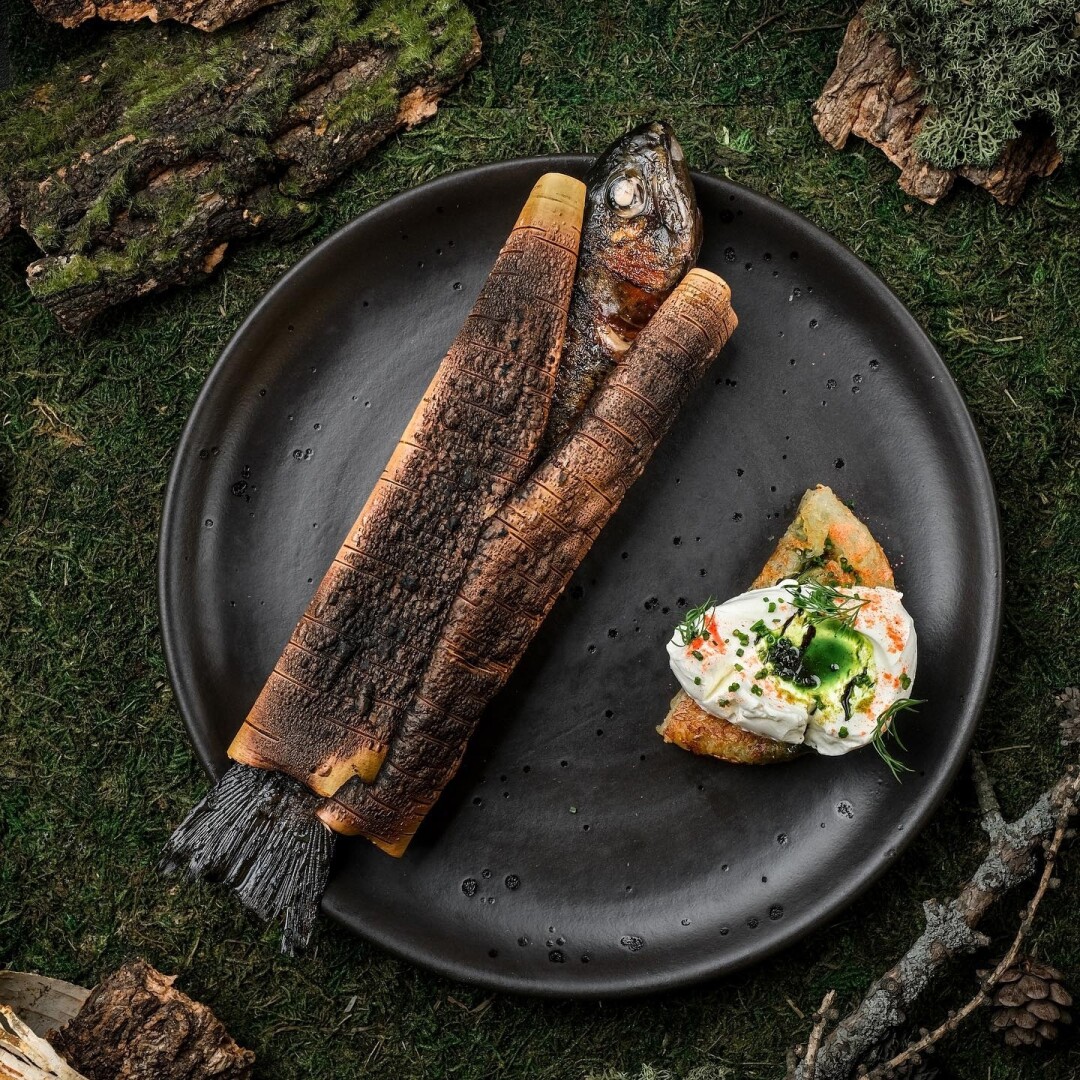 Собрались как-то у ели и здорово поели. Не присказка – быль. В Yale вдохновляются природой (и название намекает) и создают из локальных продуктов шедевры новейшей русской гастрономии. Холодец из телячьих щек с пастилой из хрена, краб с печеной свеклой на углях, сочинская форель, запеченная в бересте. После пылкого горячего уместен сорбет яблоко–щавель и холодная «Аляска» – сладкое завершение исторической трапезы.