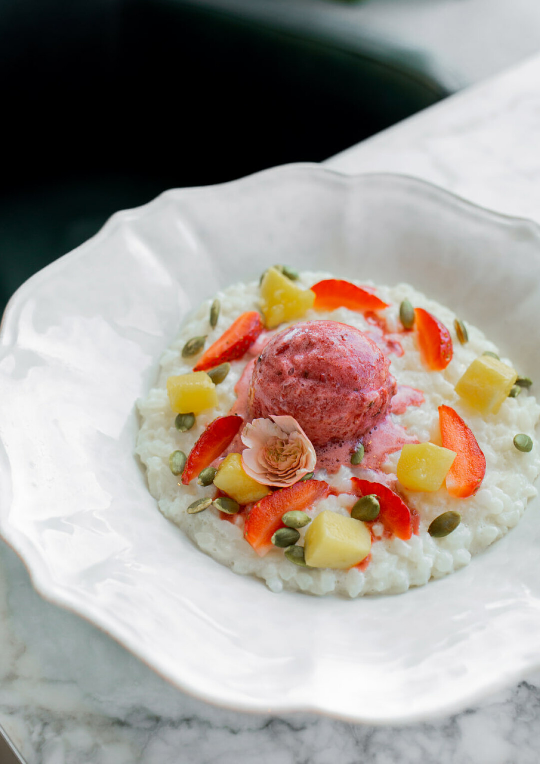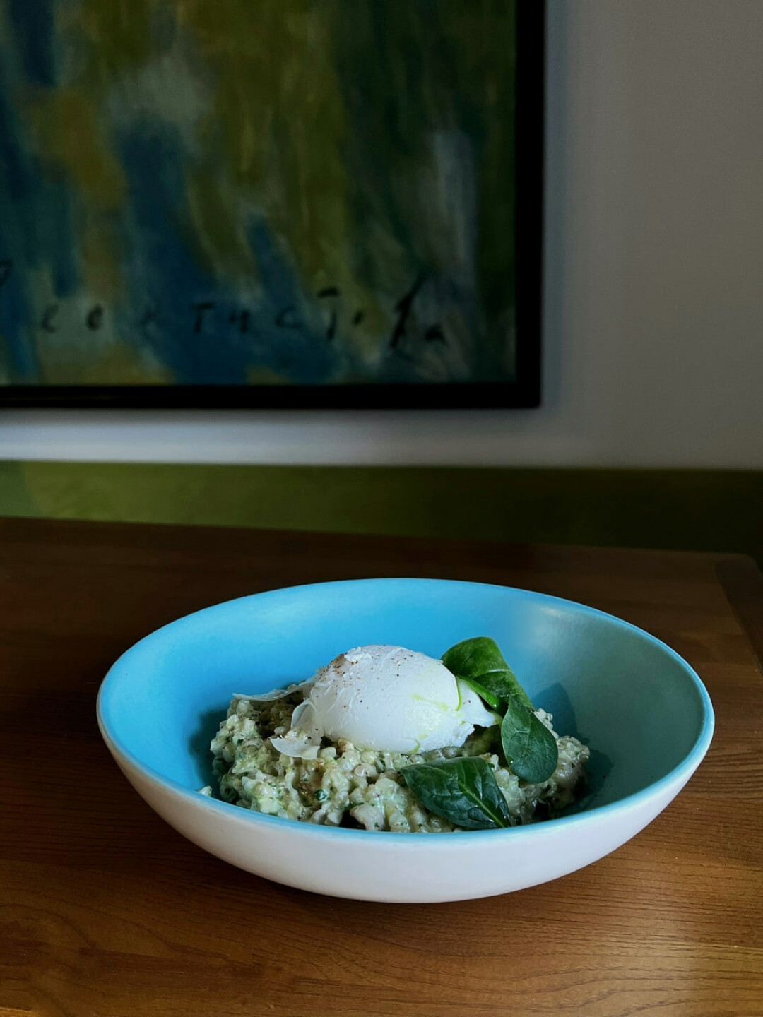 Встаем в позицию «Реки просекки», там яйцо, моцарелла, тост, спелые томаты и, конечно, no limit сухое с Апеннинского полуострова. Главная по утренней сытости – рисовая каша с вишневым сорбетом и сезонными ягодами, ее можно и на растительном молоке. Для сбалансированного ЗОЖа имеется авокадо-тост, драник из цукини и будда боул.