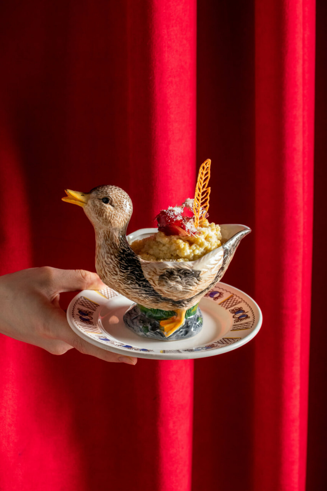 Все в ней свое, отсюда и такой домашний вкус у пшенной королевишны «Самовара да утки». А для юных гостей придумали «Мишкину кашу» (в заведении называют ее «идеальной»!) из сладких сливок, садовой виктории и мороженого. Прямиком из великой книги Носова, то есть из детства.