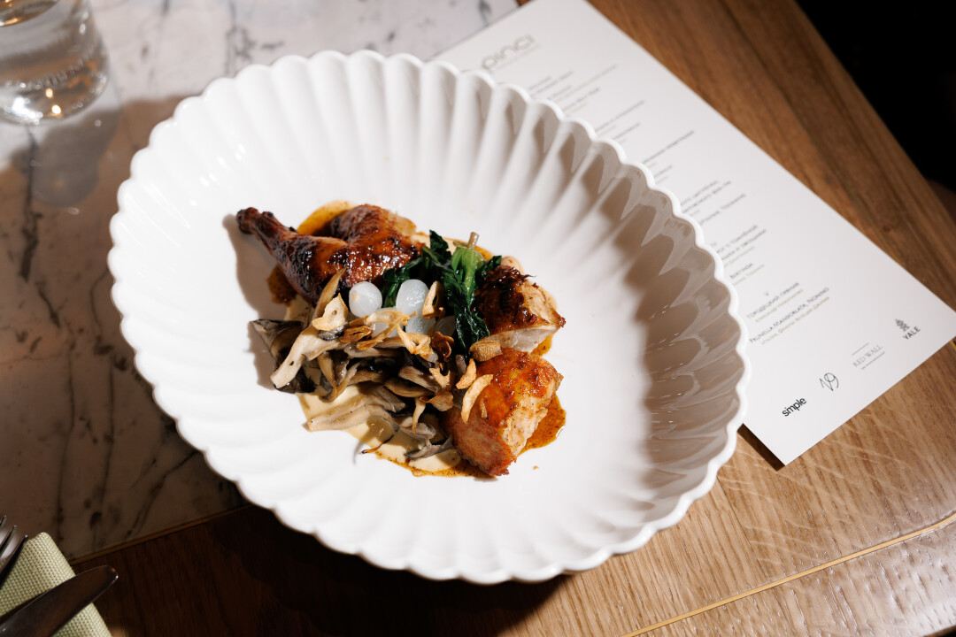На горячее – ризотто с красными сицилийскими креветками от бренд-шефа PINCI, фермерский цыпленок с вешенками и соусом из павловского фуа-гра в исполнении Игоря Шиянова и открытый пирог с томленой лопаткой барашка, овощами и песто в южном стиле (с мятой, кинзой и петрушкой) от Дмитрия Дмитриенко. Все – в дружественной энокомпании и под рассказы о происхождении напитков от сомелье, сооснователя и вице-президента Simple Group Анатолия Корнеева.
