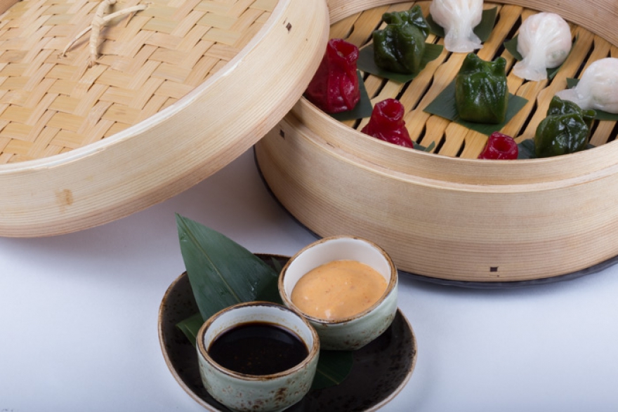 Шеф-повар предлагает дополнить дим самы двумя соусами. Подаются китайские пельмешки в аутентичной бамбуковой корзине – просто, удобно и колоритно.