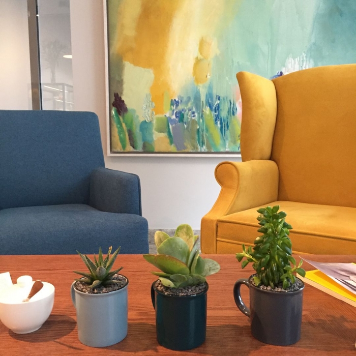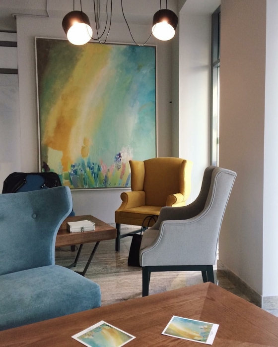 Дизайном "Темпа" занимался Роман "Крест" Докукин, вокалист группы 7000 $. Основой интерьера стала картина "Воздух" художницы Аси Феоктистовой. Изображение было использовано при оформлении барной стойки, а также задало тон всему цветовому решению пространства вплоть до яркой обивки мебели и дизайна меню, которое, кстати, можно забрать с собой.