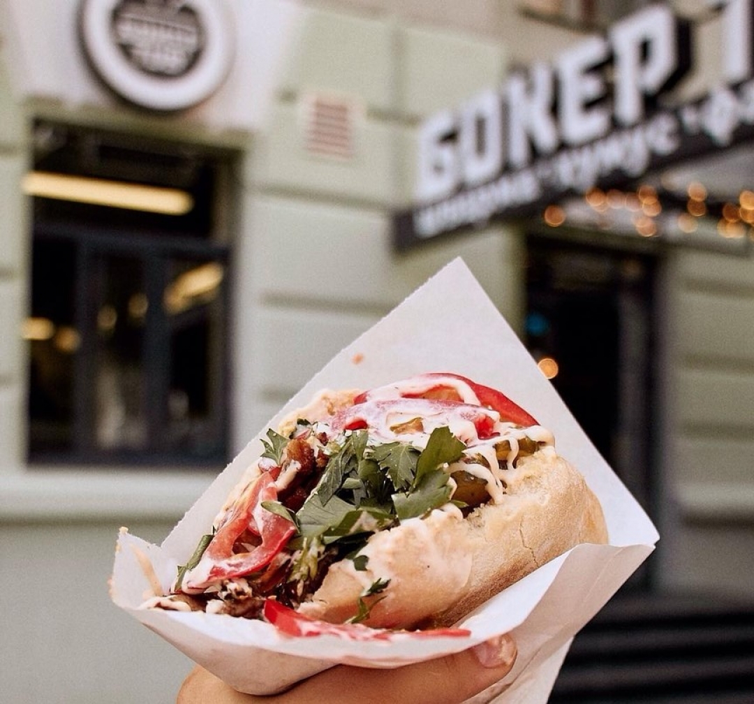 Гастрономическая карта города пополнилась новым пунктом - на площади Горького по соседству с "Макдональдсом" открылось кафе "Бокер Тов", где готовят стрит-фуд с еврейским характером.