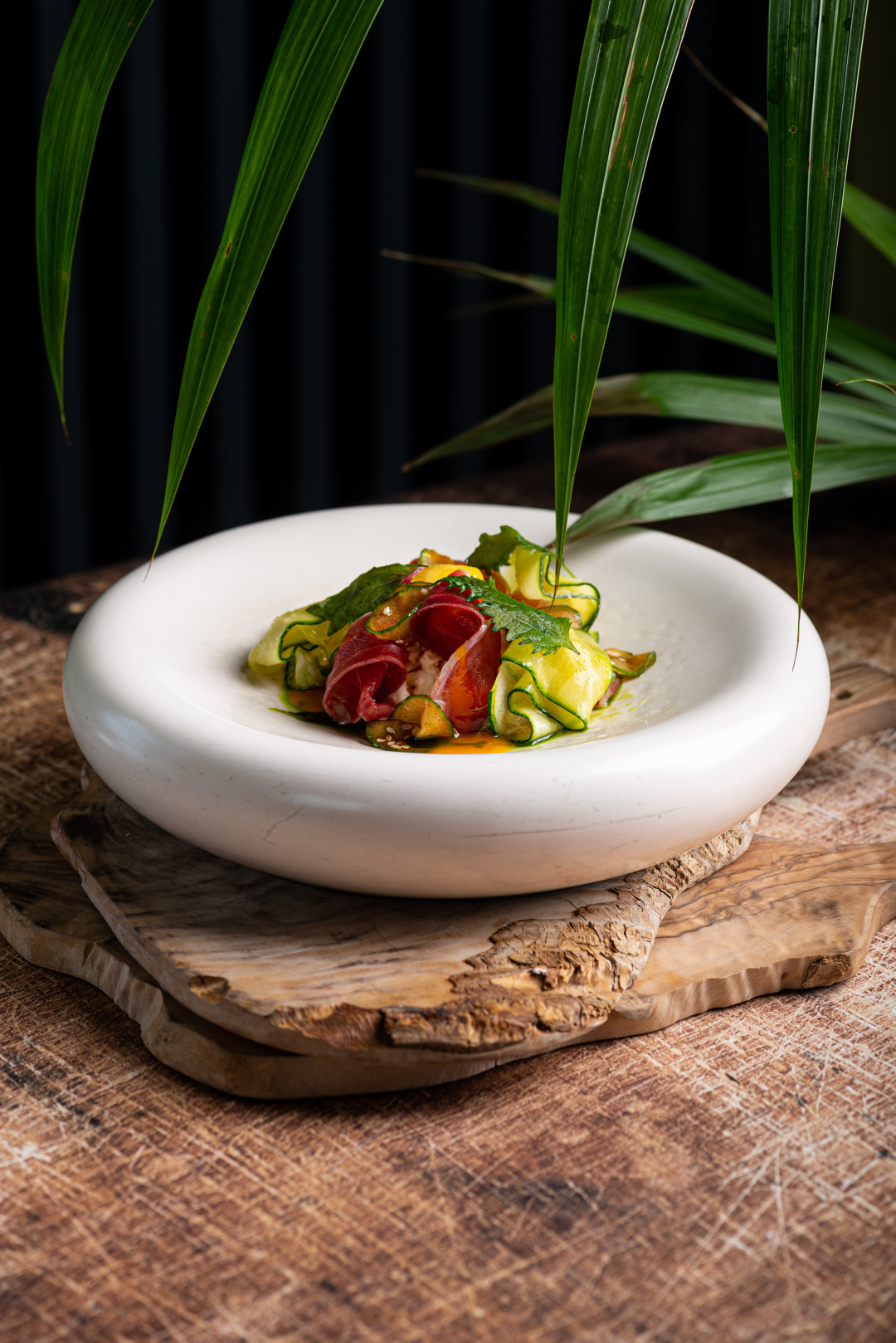 В обновленном меню на смену плотным зимним согревающим блюдам придут более легкие позиции с сезонными овощами, ягодами, зеленью. Появится еще больше предложений на основе локальных продуктов: фермерская рикотта с печеной тыквой, макрель с пюре из зеленого горошка, говяжьи ребра с баклажаном, ризотто с белыми грибами и козьим сыром, закуски и горячее с кроликом и уткой, много овощных позиций.