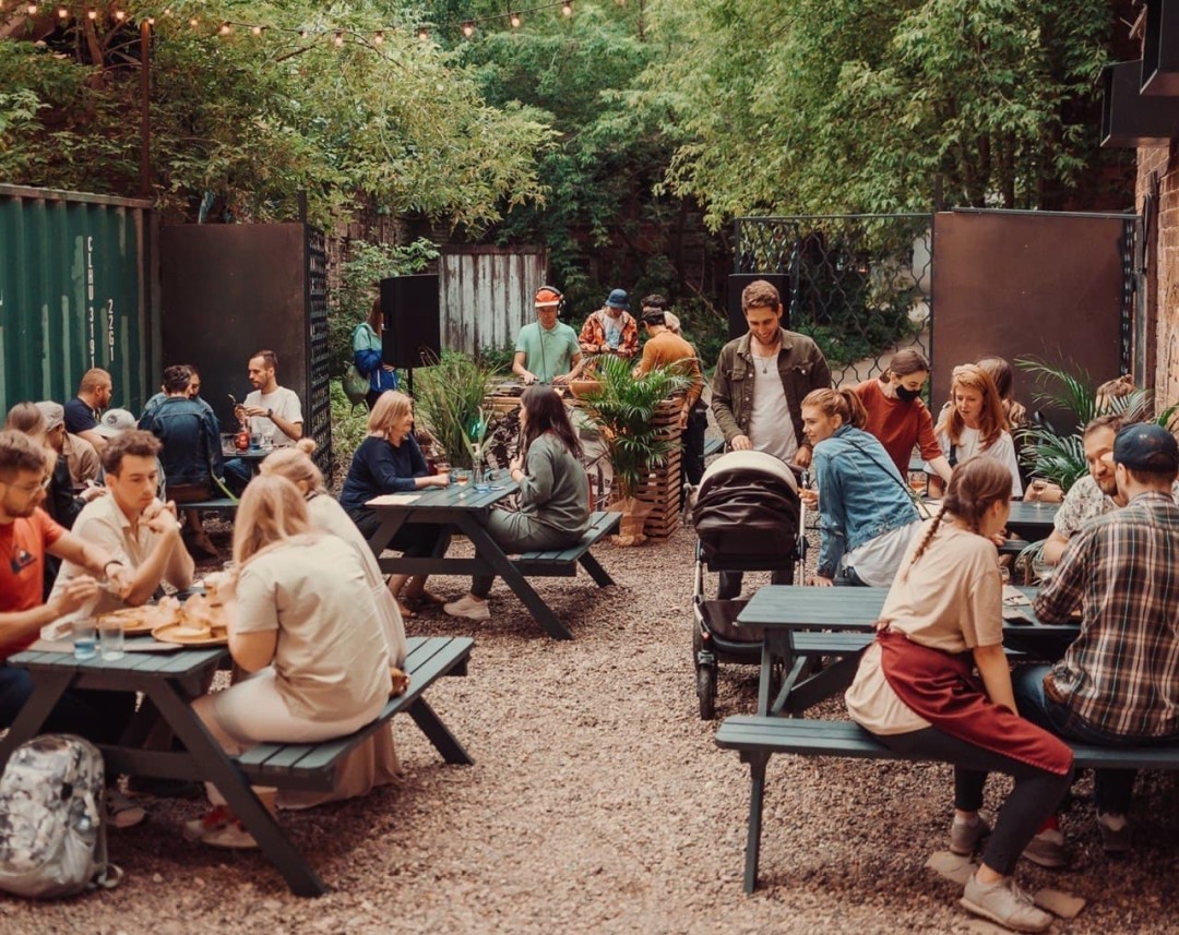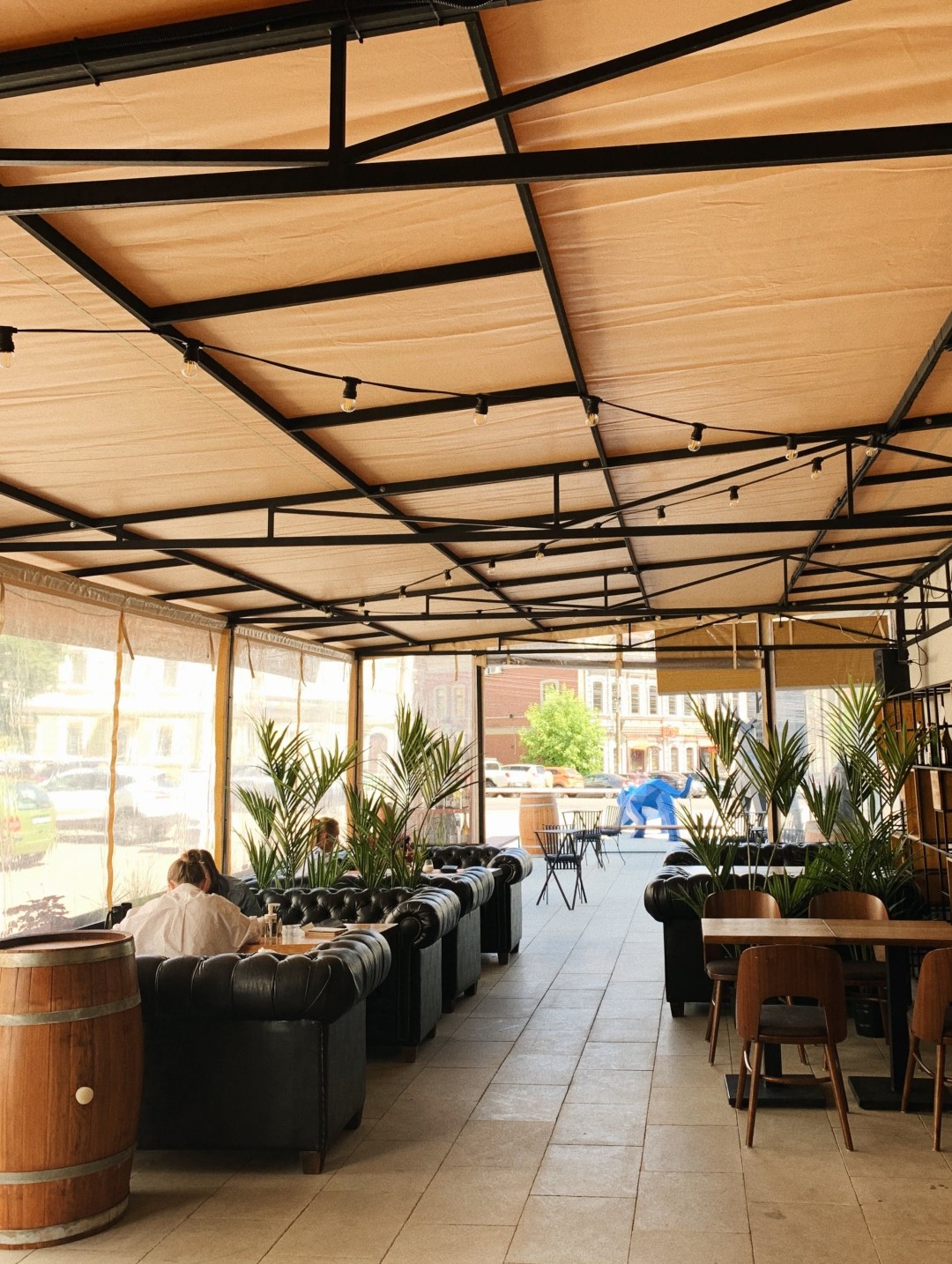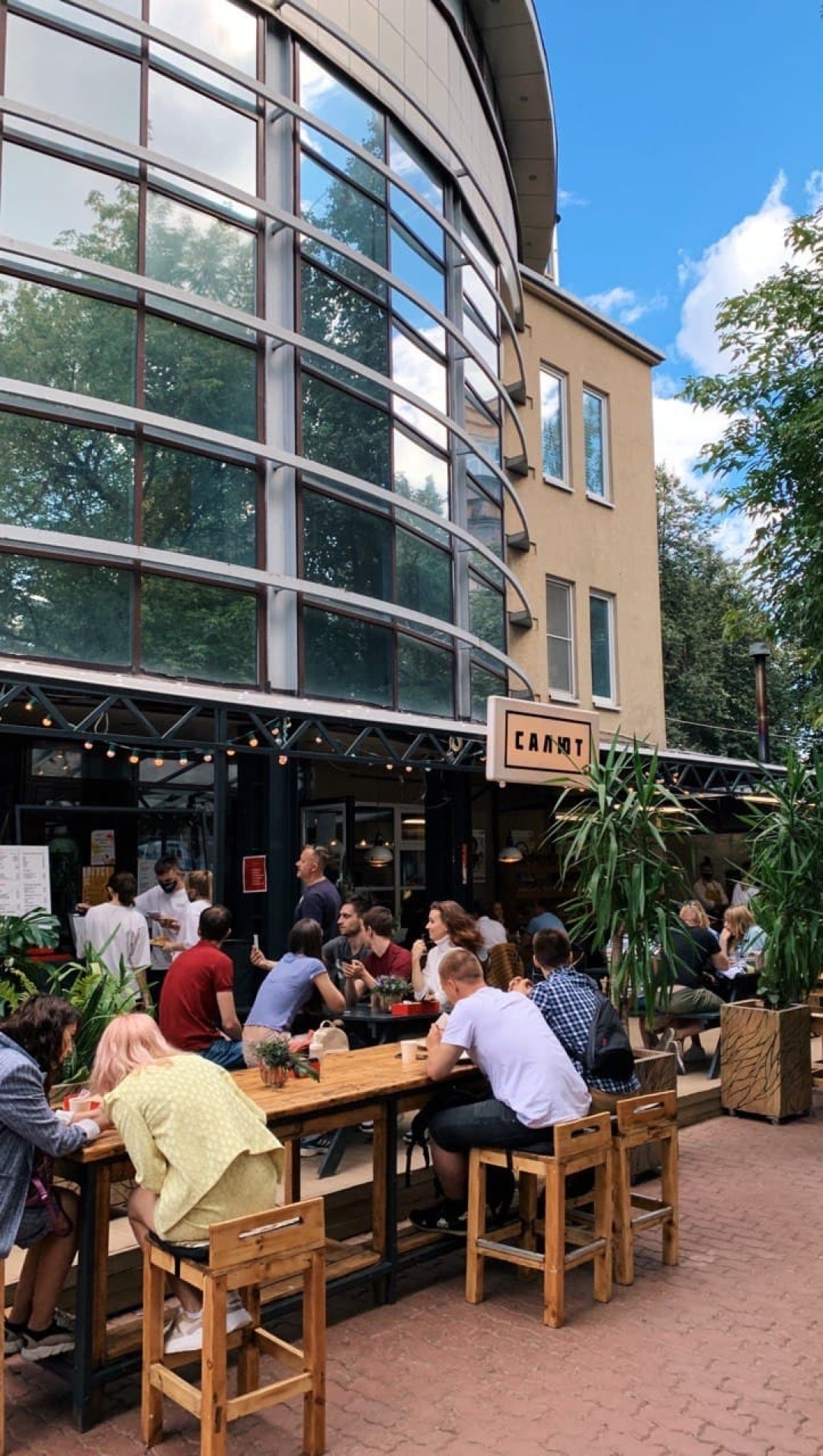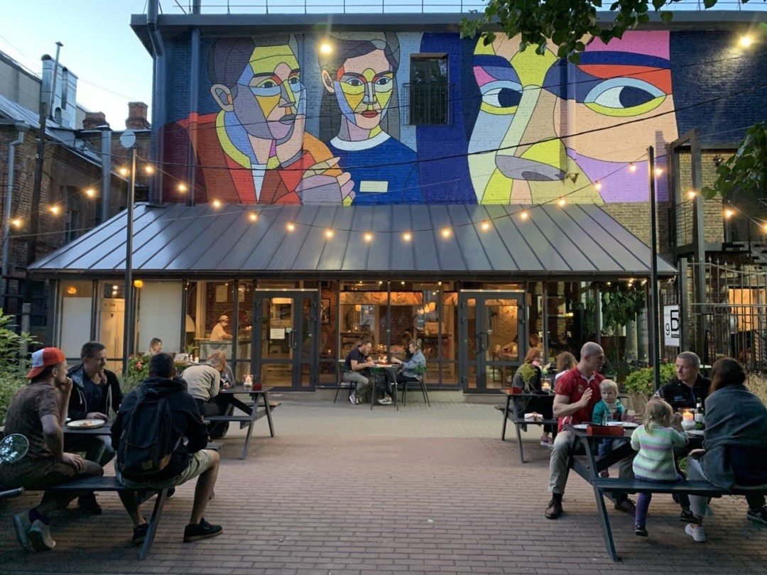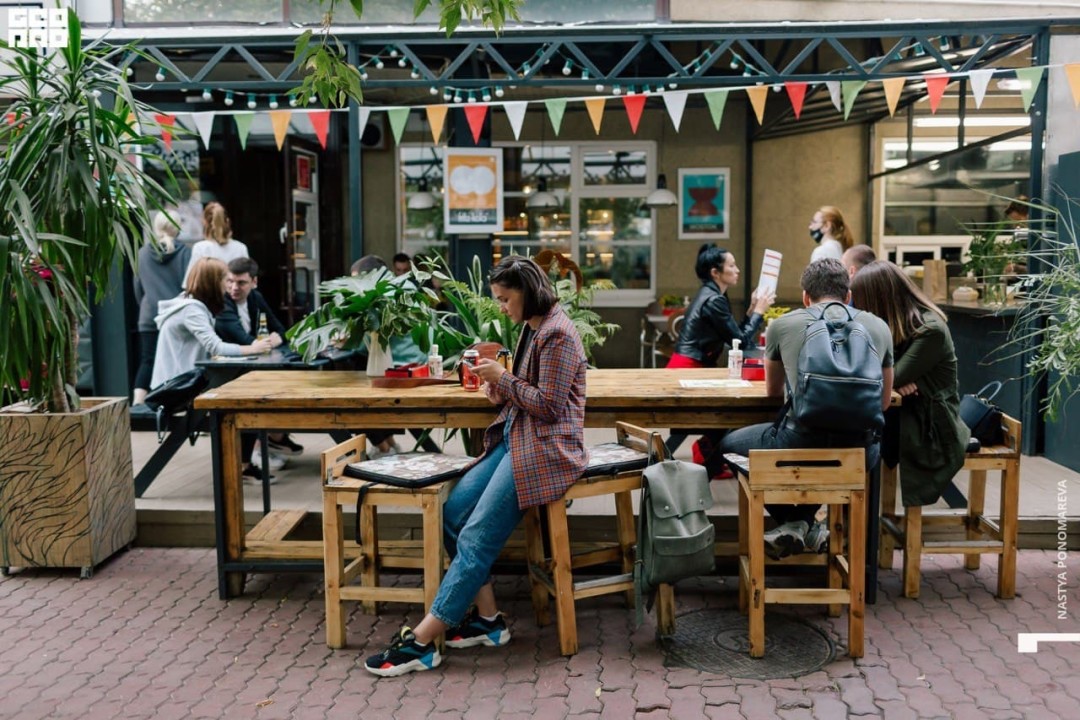 Залитая солнцем, летняя веранда напротив Чернопрудного сквера - известное место силы с обжигающе холодным крафтом, пастрами и легендарными ребрами.
