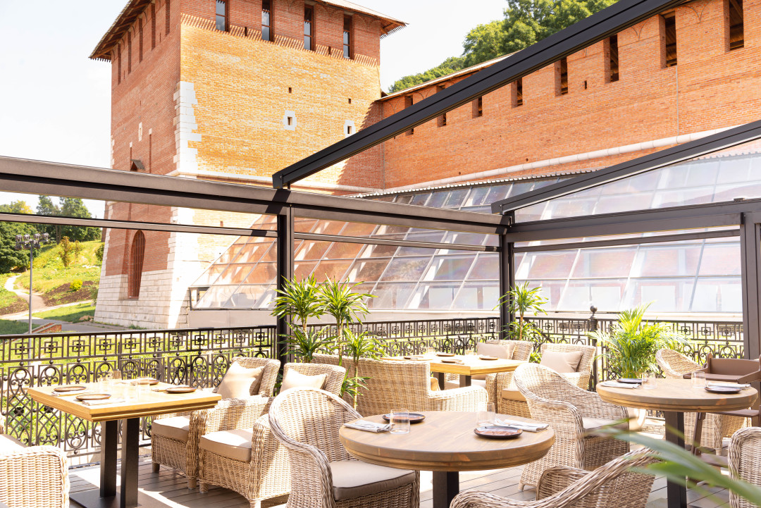 Веранда на втором этаже заведения уже начала свою работу. Крытая уютная площадка согревается тепловыми пушкам, что придает гостям особую атмосферу уюта и позволяет подольше остаться в ресторане, наслаждаясь изысканными блюдами и видом на нижегородский Кремль. Чуть позже откроется и балкон. В мае будет открыта и совершенно новое пространство в ресторане - терраса первого этажа.