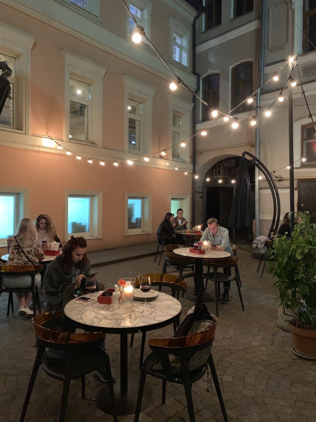 Камерная летняя площадка бара расположена на старинной улице Грузинской, возле дома, увитого диким виноградом, прямо напротив Театра Комедiя. В заведении царит знаменитое итальянское «дольче фарньенте» — сладкое ничегонеделание, которому можно предаться в любой момент, без всякого повода и зазрения совести.