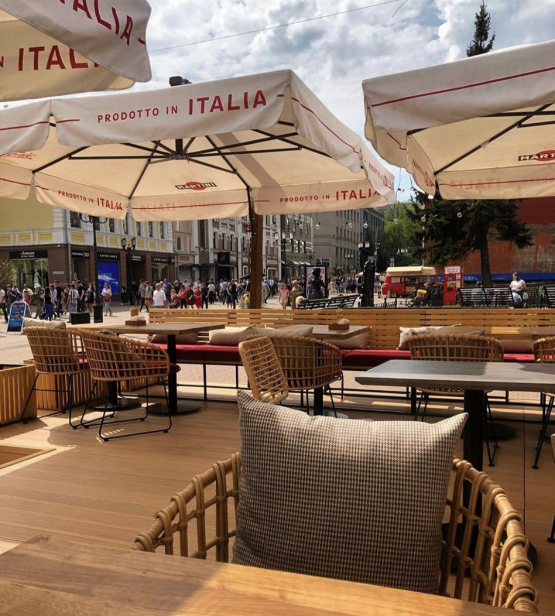 Наступает лето и пиццерия открывает сразу две летние веранды. Открытая площадка у входа в ресторан - отражение простого и стильного минимализма, а внутренний дворик с расписными стенами все больше напоминает арт-объект. Обе локации становятся центром внимания горожан, особенно в выходные, когда уютные веранды становятся площадками для выступлений локальных музыкальных групп, винных дегустаций и фри-маркетов.