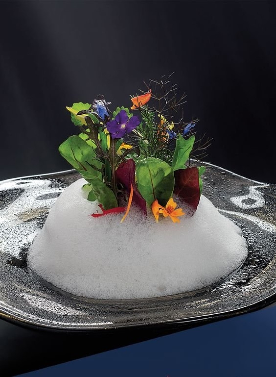 В KEI вам предложат выбрать одно из дегустационных меню, составленных шефом, – никакого самоуправства, мастер лучше знает, как доставить вам гастрономическое удовольствие, например, подав «сад из овощей» на воздушной пене, в которой прячется подкопченный лосось, или лангустинов в бульоне из цветов гибискуса.А классический французский десерт вашерин в руках Кобояши приобретает азиатский акцент благодаря сочетанию базилика и японского клементина.