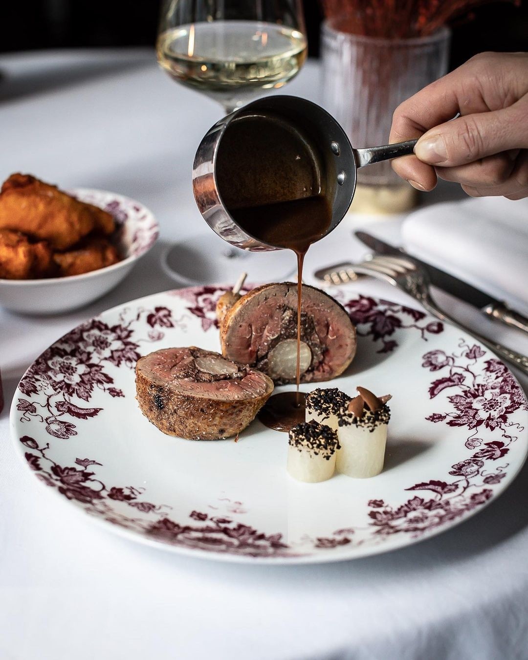Черная икра, бриошь и картофель помпадур здесь превращаются в гастрономический оммаж «Черному квадрату» Малевича, нежные гребешки скрываются под лепестками черного трюфеля, а шоколадный десерт доказывает: настоящий мастер может приготовить один и тот же продукт так, что он каждый раз будет играть новыми красками.