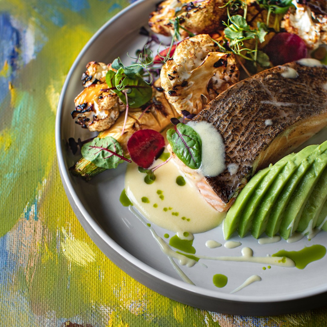 Яркий пример того, как в руках мастера простое сочетание лосося и цветной капусты наполняется новыми красками. Тонкий вкус лосося здесь обретает силу благодаря яркому лаймовому соусу, а глазированные овощи перестают быть скромным гарниром, оттеняющим главный ингредиент. Теперь это равноправный партнер в этом сложном, насыщенном блюде.