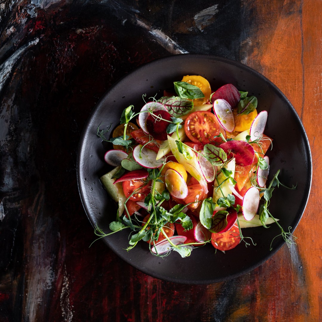 Ничего лишнего, ничто не отвлекает от фермерских овощей, текстур и вкусов честных и чистых продуктов. Только итальянское оливковое масло согревает и придает томатам легкий привкус путешествий.