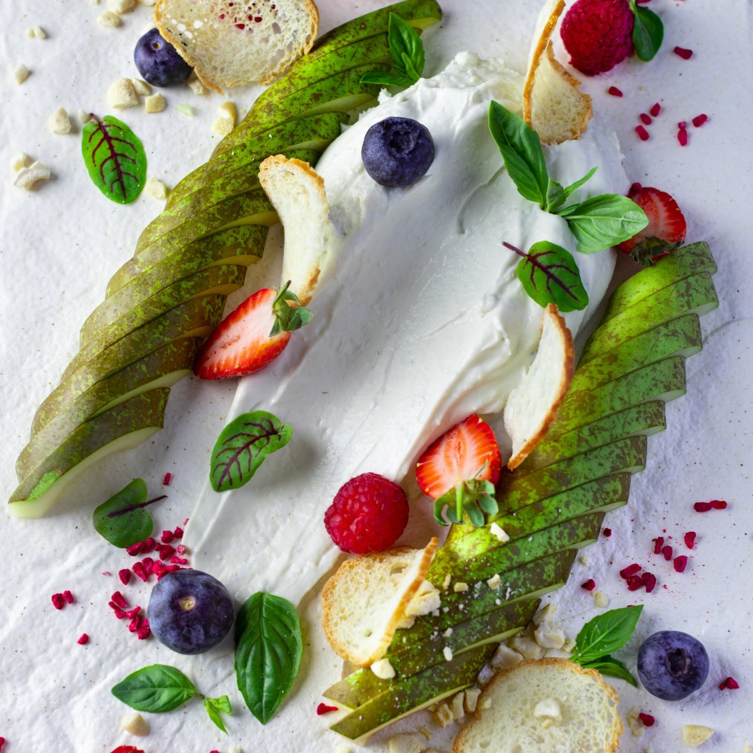 Крем из голубого сыра с грушей и ягодами