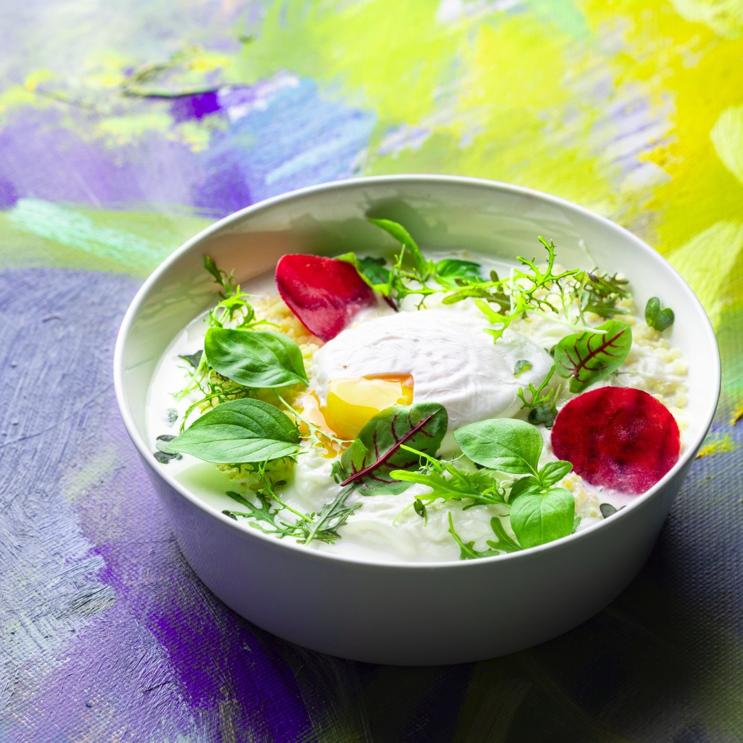 Пшенная каша на завтрак, как воспоминание из детства, только обогащенное взрослым опытом. Солнечное яйцо пашот, яркие слайсы свеклы, зеленые всполохи зелени – начало дня взрослого человека, который все еще с нежностью вспоминает привычку начинать день с тарелки ароматной каши.
