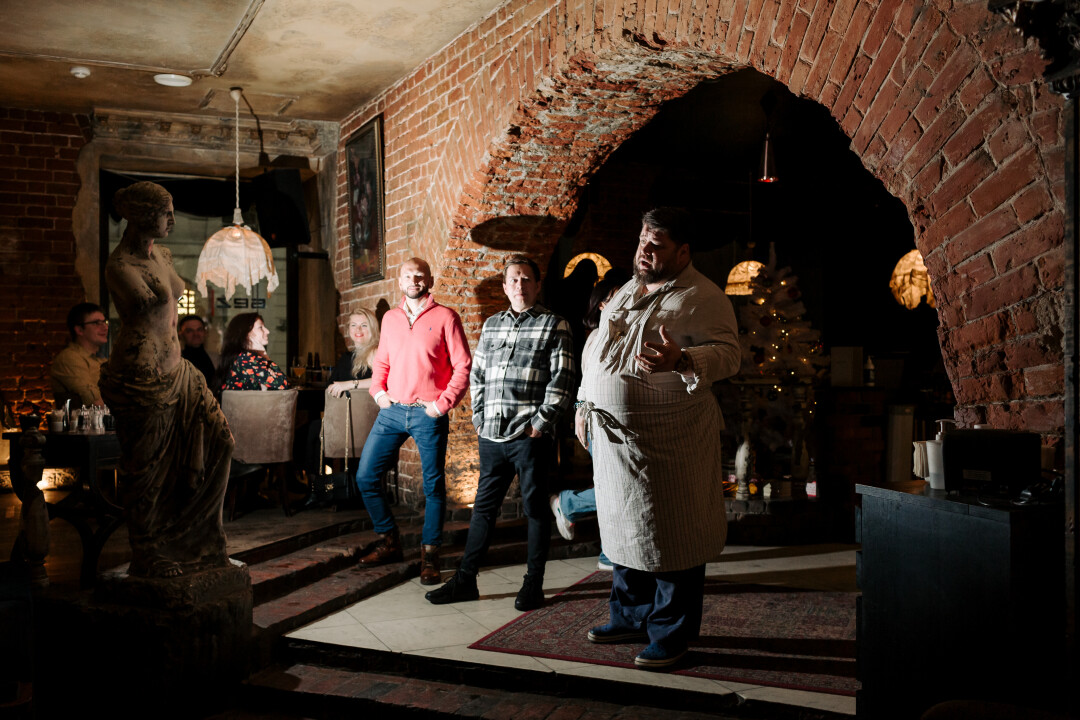 К презентуемым напиткам был подобран курс из пяти блюд волжской кухни в авторской подаче от шеф-повара «Безухова» Александра Голышева.