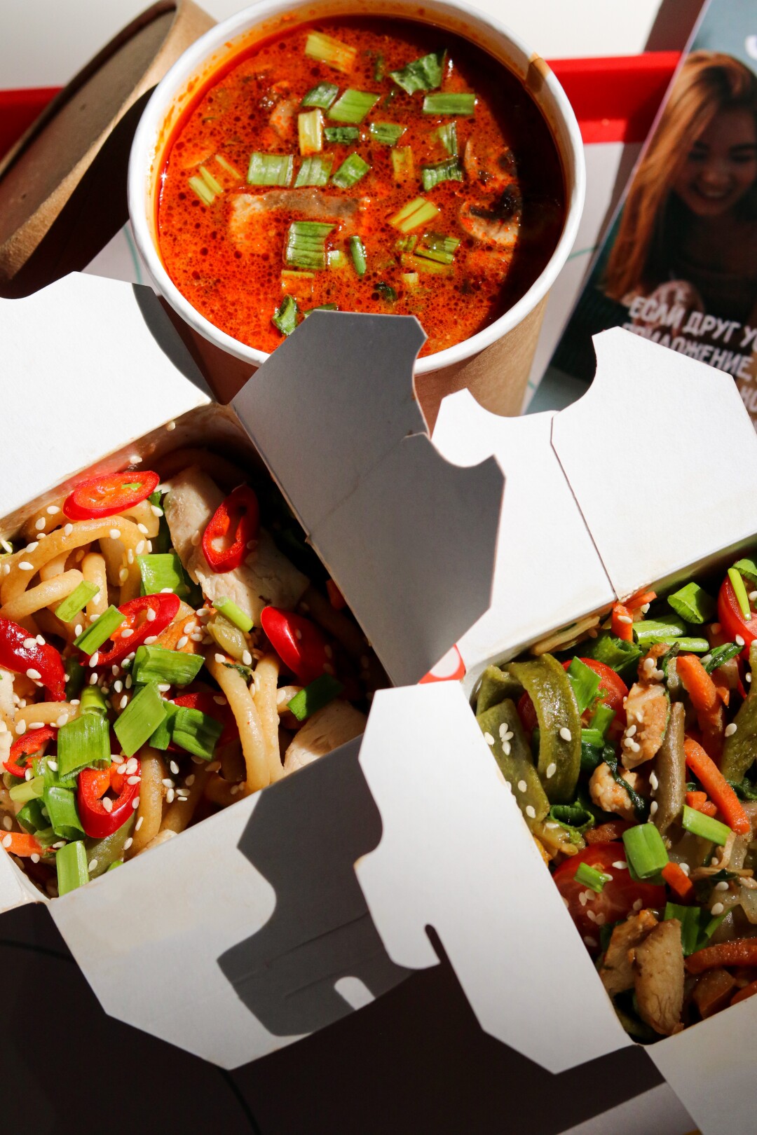 Фастфуд должен быть не только вкусным и быстрым, но еще и удобным, и здесь Ok Noodle тоже справляются с задачей на отлично. Совместить шопинг с дегустацией лапши? Легко, если вы прогуливаетесь в ТЦ «Мега» или ТЦ «Океанис». Заказать Ok Noodle домой или в офис? Приложение доставки всегда готово прийти на помощь. Получить кроме вкусной еды приятный бонус? Безусловно! Пользователям приложения сеть Ok Noodle предлагает щедрый кешбэк от 10 до 20% и еще множество акций на самых «вкусных» условиях. Начиная с самого первого заказа, можно получить в подарок пшеничную лапшу с курицей, а пригласив друга, получить в подарок 300 баллов – чем не повод для знакомства?