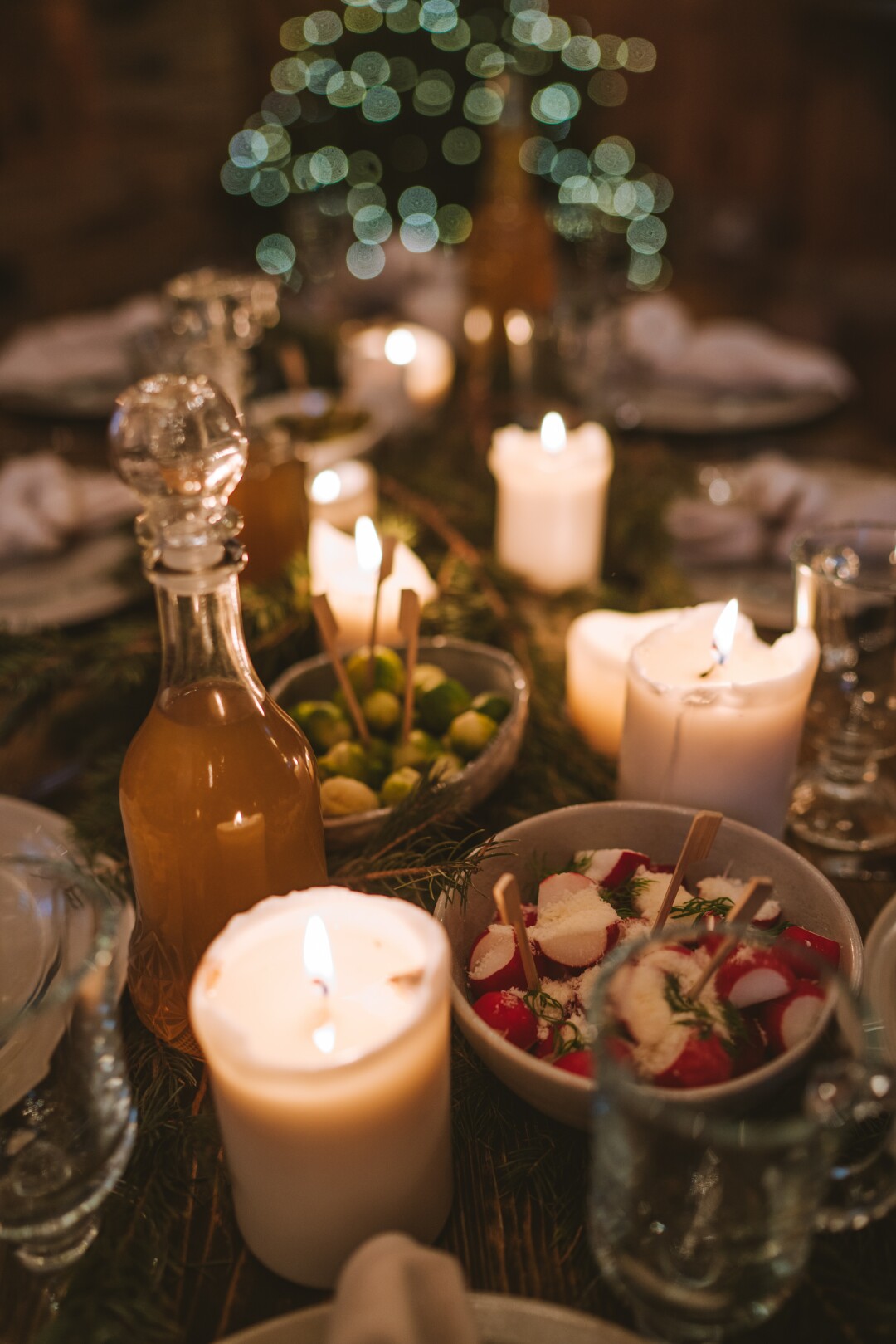 Новогодние смерребреды. С красной икрой и сливочным маслом (575₽ за шт), с селедкой под шубой (425₽), с «не оливье с крабом» и трюфельным кремом (595₽). Горячие смерребреды с утиной грудкой и вишневым соусом (750₽ за порцию), картофельная запеканка с анчоусами (725₽).