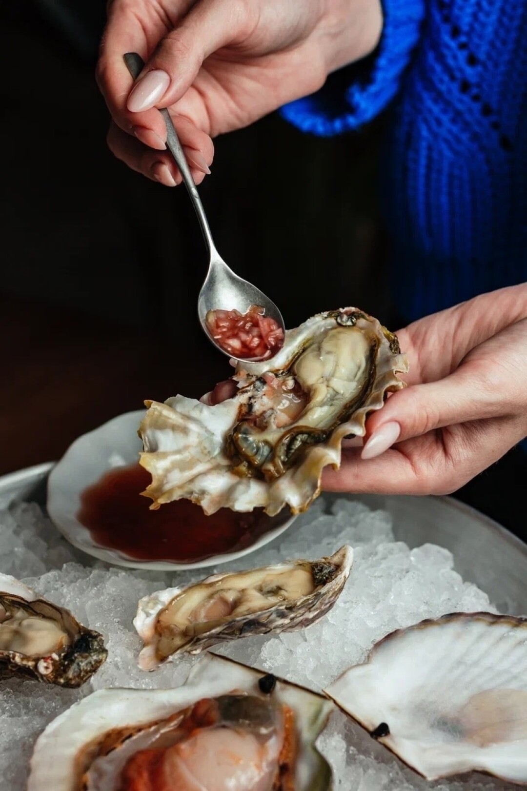 Помимо свежести важно правильно устрицу открыть, чтобы в ней не было осколков раковины. Хорошо открытая устрица выглядит так, словно она еще не заметила, что с нее сняли верхнюю створку. То есть она фотогенична, приятна глазу и соцсетям.