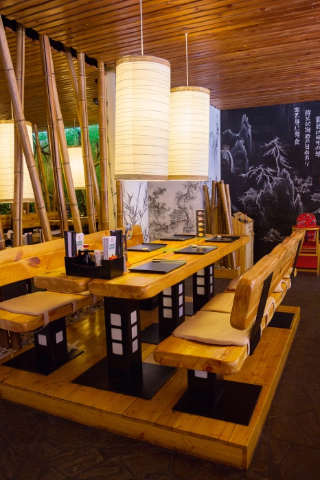 А еще во всех трех зонах «Тануки» появились вместительные столы, где комфортно могут разместиться по десять-двенадцат