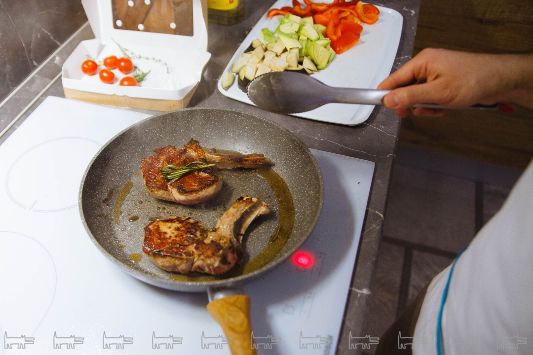 Обожаю ходить в гости, особенно, когда нет повода, так что этот проект с «Белым фартуком» и журналом «НН.Собака.ru» будто создан для меня. У Миши в гостях мы попробовали теплый салат с курицей на закуску и корейку теленка с овощами гриль. Все просто и вкусно. Можно даже не уметь готовить, но, следуя подробной инструкции, которая прилагается к заказу, получается, как в ресторане. Кстати, еще к заказу кладут белый фартук, так что можно действительно почувствовать себя заправским шефом на кухне. Рекомендую, кстати, высылать сразу пару фартуков, ведь некоторые неугомонные гости могут проявить активность и тоже включиться в процесс приготовления, как это сделали мы.