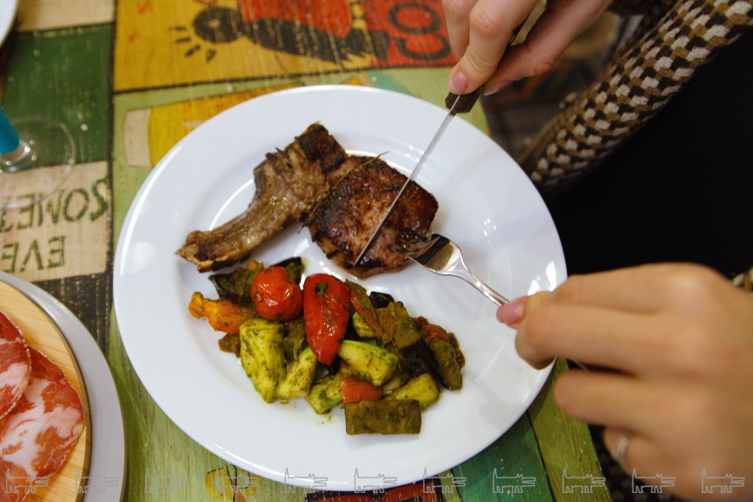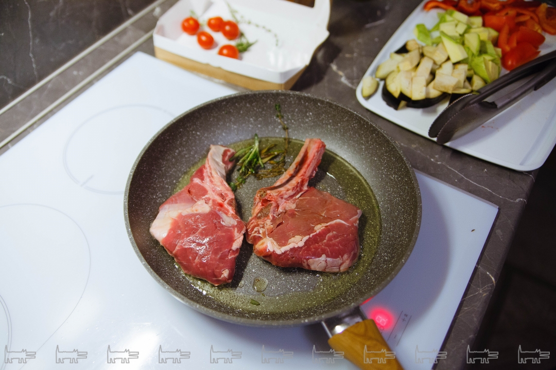 Особенно мне понравилось каре теленка. Мясо получилось очень сочное и, на мой взгляд, идеальной прожарки. Веточки розмарина и тимьяна придали особенный аромат блюду. Ну а овощи – вообще мой любимый гарнир, так что тут все идеально сошлось.