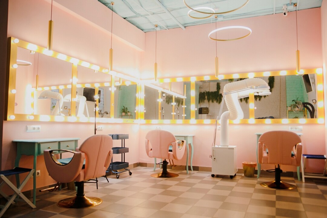 Коворкинг для специалистов бьюти-индустрии. Площадь пространства – 120 кв. м красоты. На рабочих местах есть все, чтобы начать работать с клиентом прямо сейчас: профессиональное оборудование и свет. Можно и стрижку сделать, и маникюр в порядок привести. Предусмотрены залы для мастер-классов. Интерьер в нежных розовых тонах – отличный вариант для девичьих сториз.