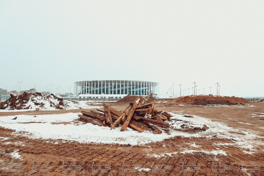 Летом территорию Стрелки обещают благоустроить и сделать там красивую прогулочную зону с парком и парковкой. Проход туда будет свободным для всех желающих, но и сейчас пройти туда совсем нетрудно. Везде идут работы, а на проходной сидит охранник, который разрешает сделать пару кадров, которые скоро станут частью нашей истории.