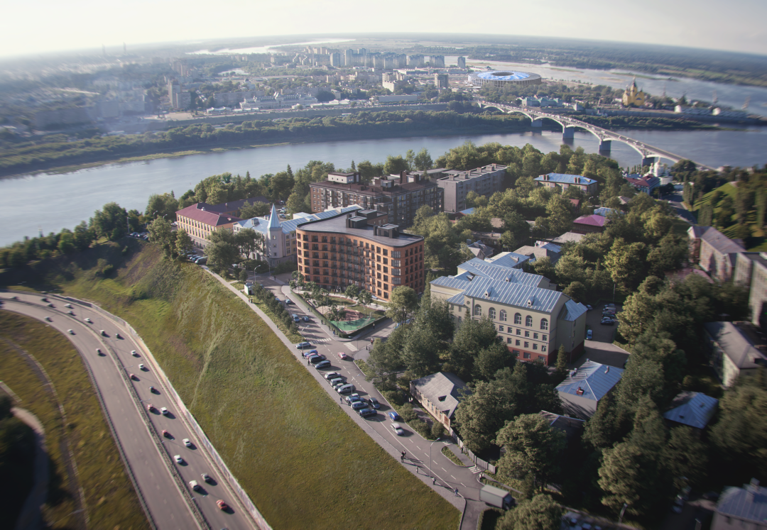 Жилой дом на Верхне-Волжской набережной воссоздает лаконичные формы и сдержанный облик памятника архитектуры эпохи конструктивизма – гостиницы «Россия». Будущие жильцы окажутся в центре культурной и деловой жизни города (на площади Минина и Пожарского проходят все главные события), а все важнейшие достопримечательности Нижнего будут в пешей доступности. Живописный вид на стрелку Оки и Волги для кого-то станет отличным дополнением к жилью, а для кого-то – решающим аргументом для приобретения недвижимости именно здесь.
