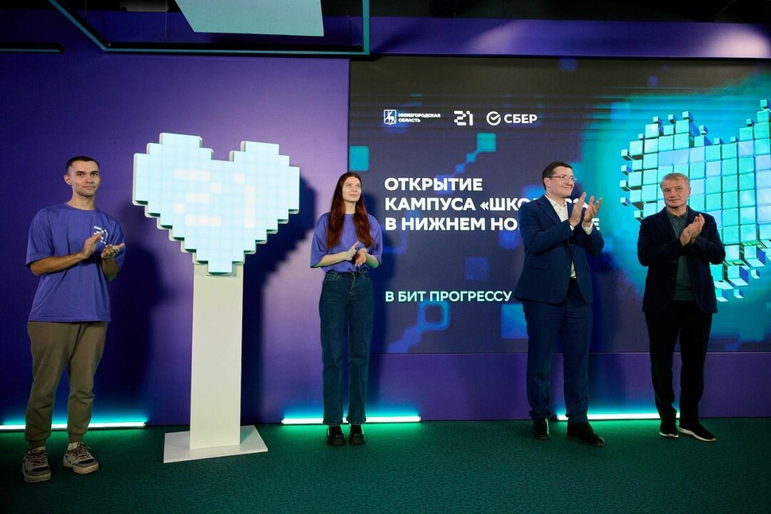 На открытии кампуса площадью 2660 м² на ул. Тургенева, 30 присутствовали председатель правления Сбербанка Герман Греф и губернатор Нижегородской области Глеб Никитин. Греф отметил, что Нижний — один из самых продвинутых городов в стране с точки зрения развития современных технологий, микроэлектроники и IT. А Никитин добавил, что несмотря на это, даже у нас тоже существует дефицит кадров, который и устранит "Школа 21" с ее дисциплиной, свободным, но плотным режимом.