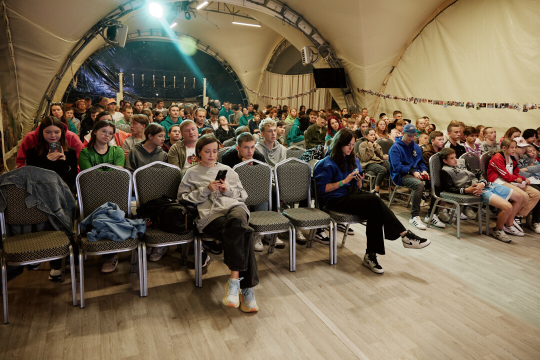 Фестивальная пятница на Горьковском море проходит в два этапа: игровой и культурный. Сначала идем на футбольное поле, где уже разминаются и вовсю готовятся играть в килу – отечественный аналог регби с примесью правил из футбола. Пока нам объясняют смысл игры, ребята в очерченных прямоугольниках пытаются повалить друг друга на газон, просто потому что это весело, и занести мяч в зону соперника. По окончании одного из матчей слышим такой диалог: «Ты че не болел за нас?» - «Я же в другой команде играл». В общем, все серьезно тут. Не мешаем. Бежим в просторный шатер, чтобы успеть занять место в первом ряду на творческой встрече с актером Владом Прохоровым, который сыграл молодого Сергея Жукова в новом байопике о «Руки Вверх».