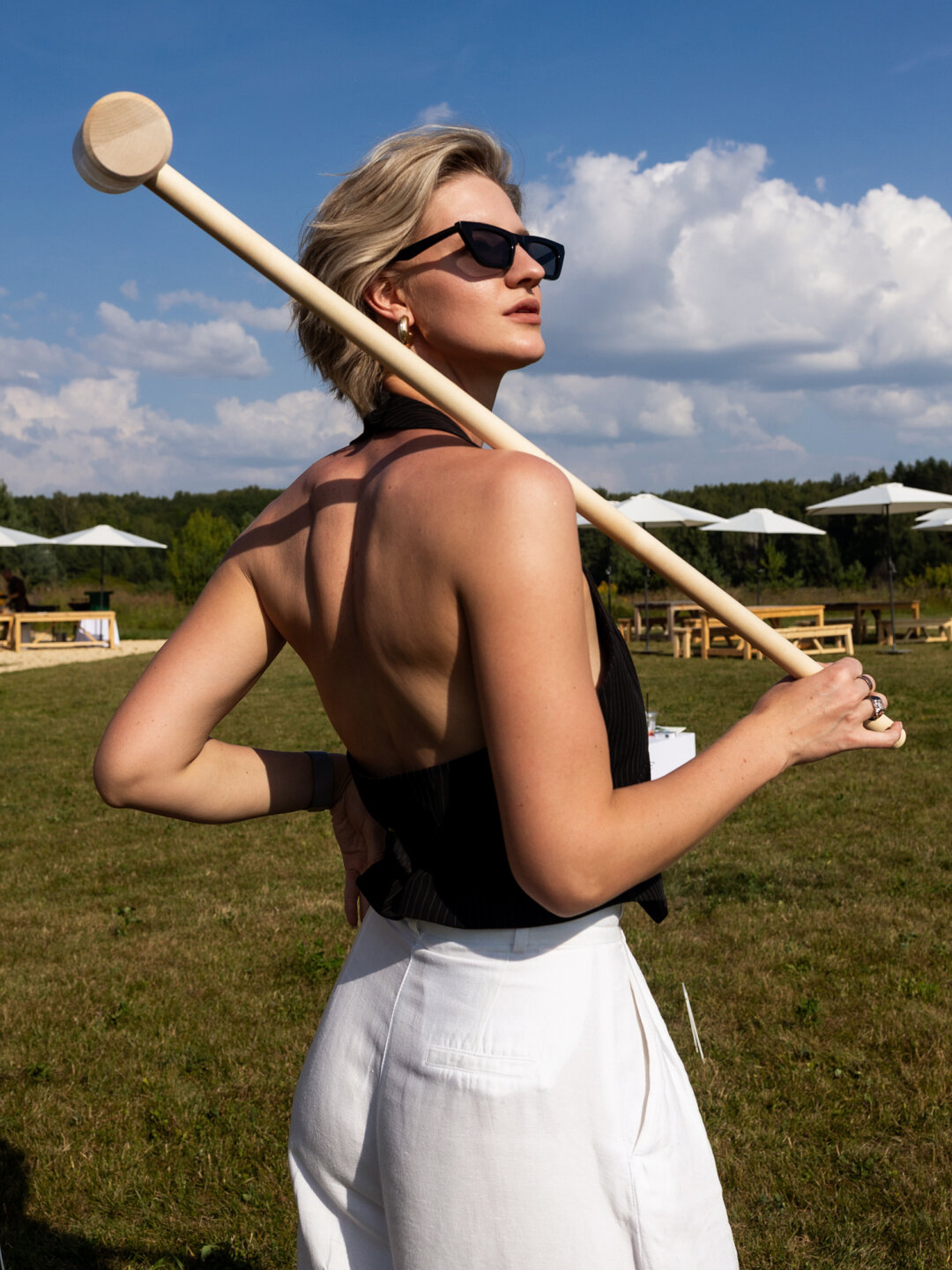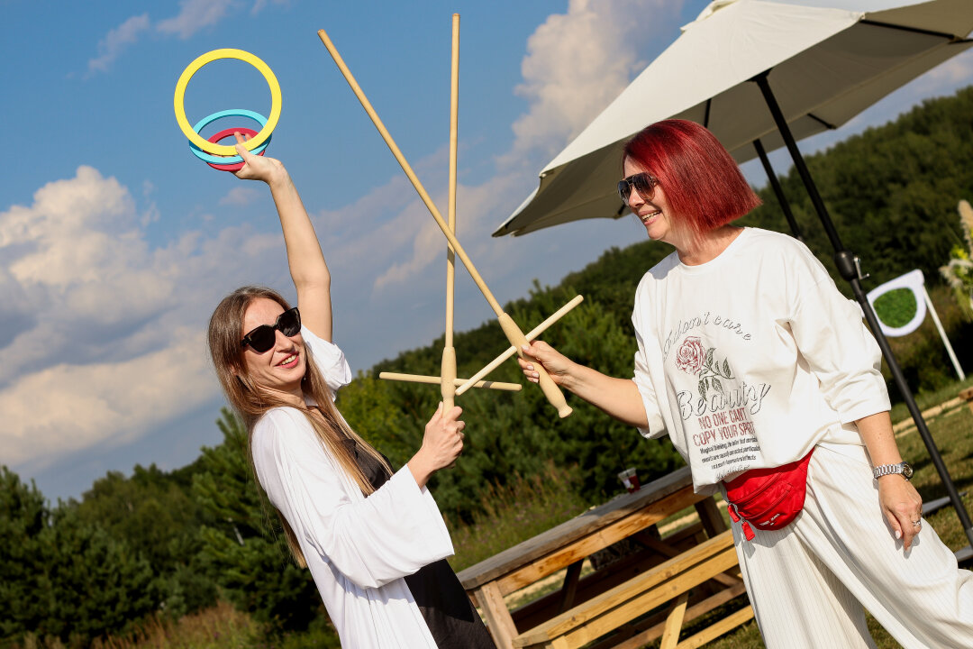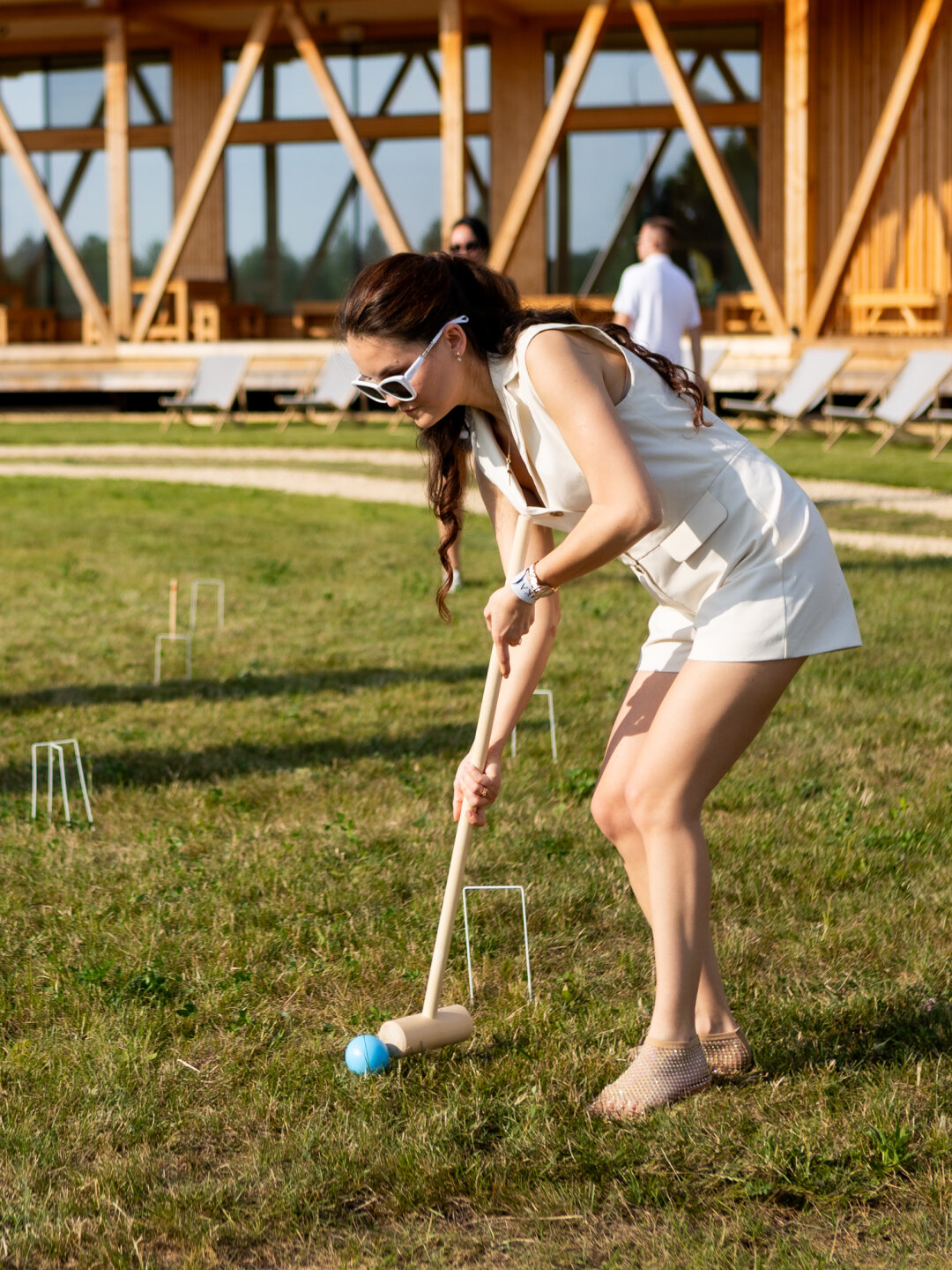 Крокет прошел в лучших традициях загородных вечеринок: участники в светлых луках и летних платьях, удары молотков по шарам, смех и аплодисменты. И подарки: Л'Окситан и Оптика Кронос подготовили сюрпризы для всех участников, а Babor устроил настоящий квест — два сертификата получили победители в городки и серсо, а ещё один — гость с тайным сердечком на браслете.