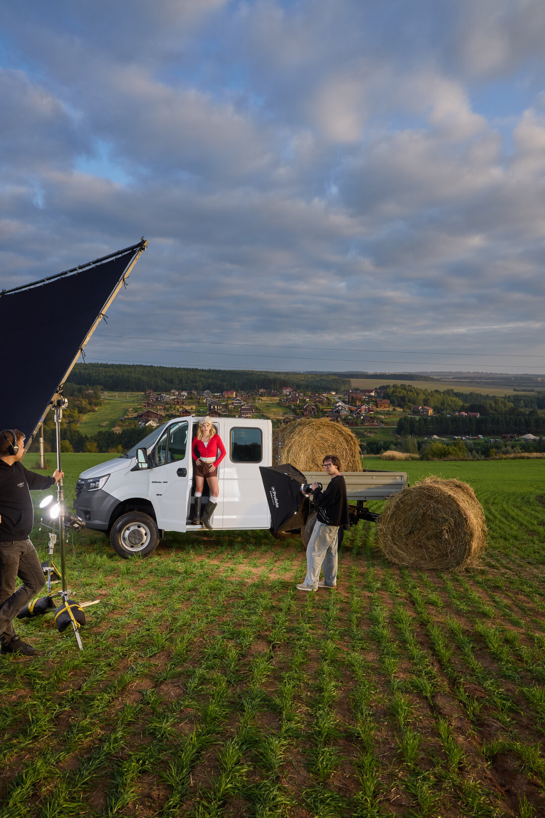 Мы снимали автомобили там, где они живут своей настоящей жизнью: пожарный – на боевом дежурстве, изотерму – в пути, тягач – в работе, молоковоз – среди полей и деревень. Получились кадры, где машины не играют роли – они делают то, ради чего созданы: спасают, перевозят, поднимают, помогают в буднях и на отдыхе. Каждый кадр – часть большой истории о силе, смелости и красоте, а груда металла буквально «заиграла», как только встала в нужный фон, контекст своей среды и с прекрасной девушкой рядом.