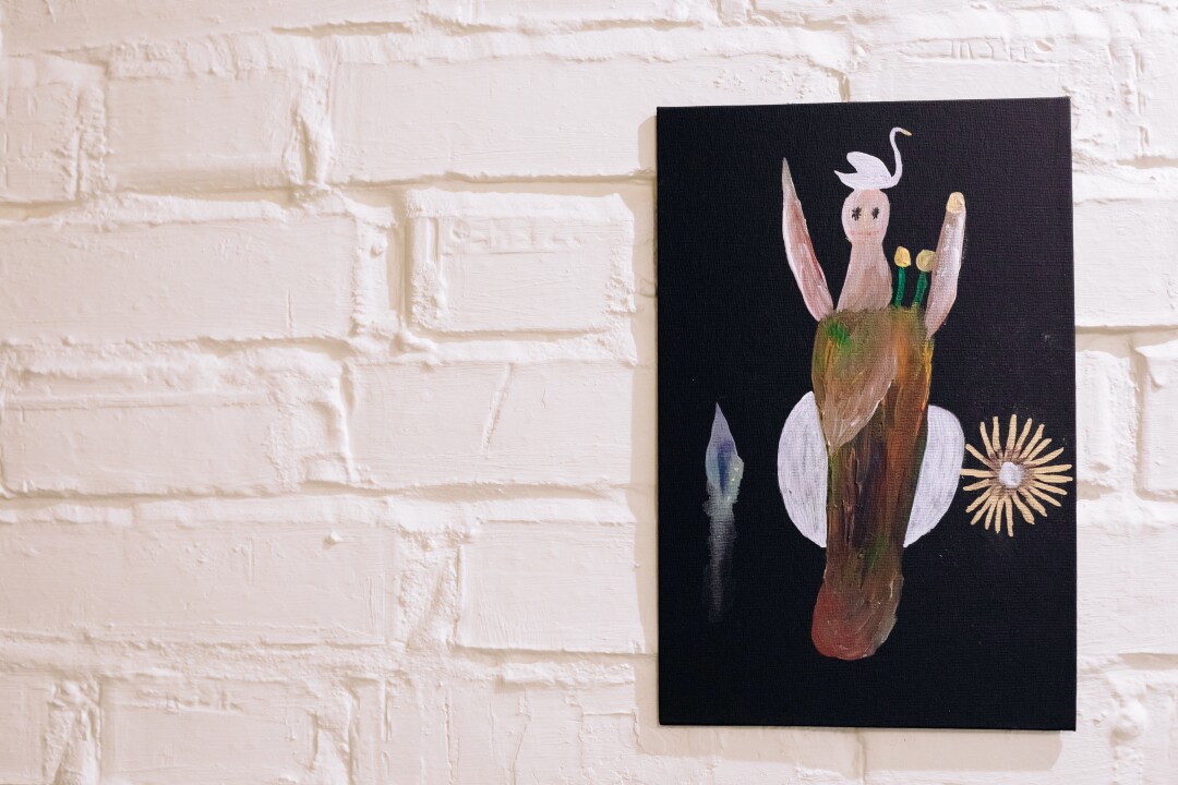 На выставке есть образы, такие как Черный клоун, которые как будто сами навязали себя мне, и я стал для них медиумом. Эту же роль я принял на себя, играючи, в создании выпиленных из фанеры кривых формах. Они получились в результате опытов по гаданию на воске — это своего рода воздушная серия образов: пророк, облако, птица.