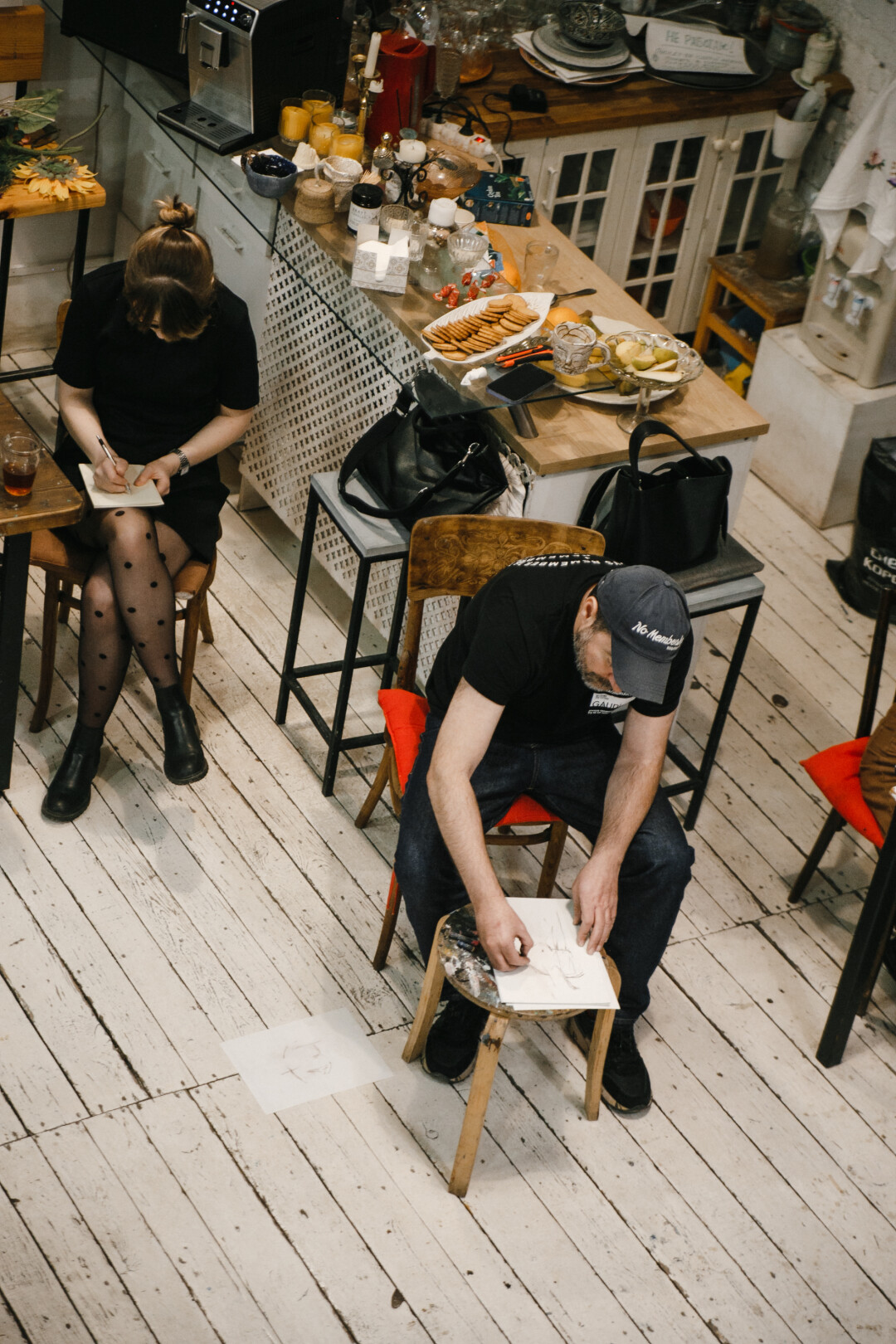 Аня: Мне вдруг оказалось важным, чтобы у всех художников был интересный ракурс. Чтобы после я не краснела от своих изображений. Спойлер: я осталась довольна.