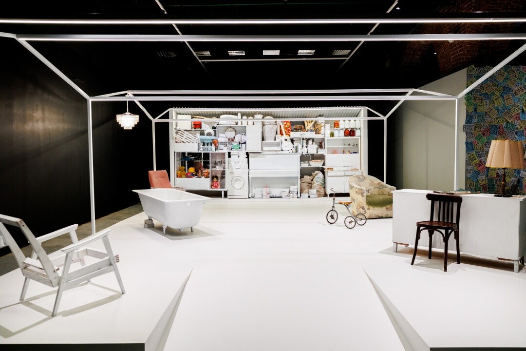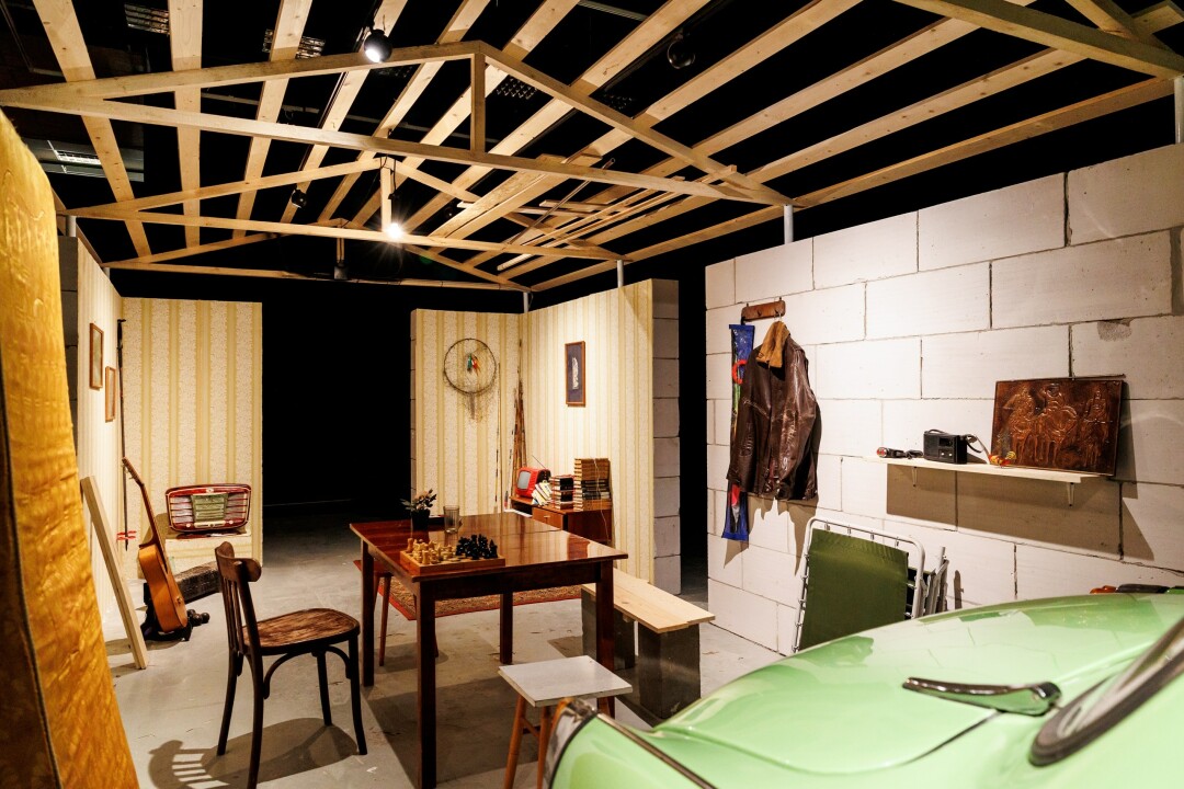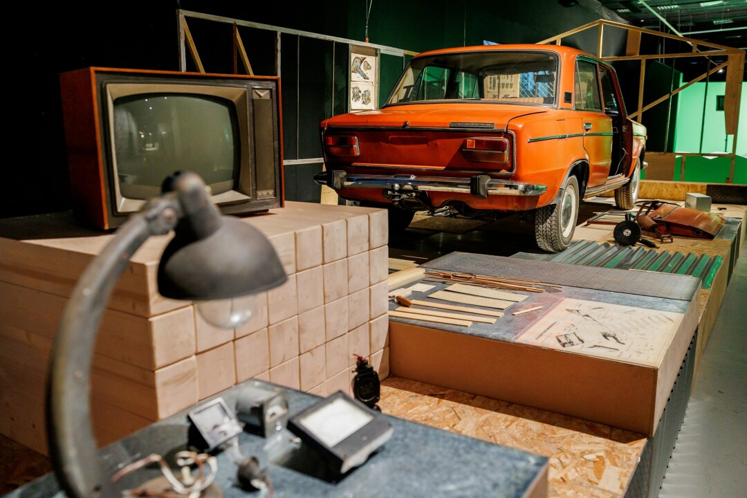 Среди инсталляций выставки — «стратегический запас» с домашними заготовками, старыми детскими игрушками и другими дорогими памяти предметами быта, а также витрина счастья советского человека с предметами роскоши вроде телевизора, сервиза, или гараж, который в СССР выполнял функцию мужского клуба.