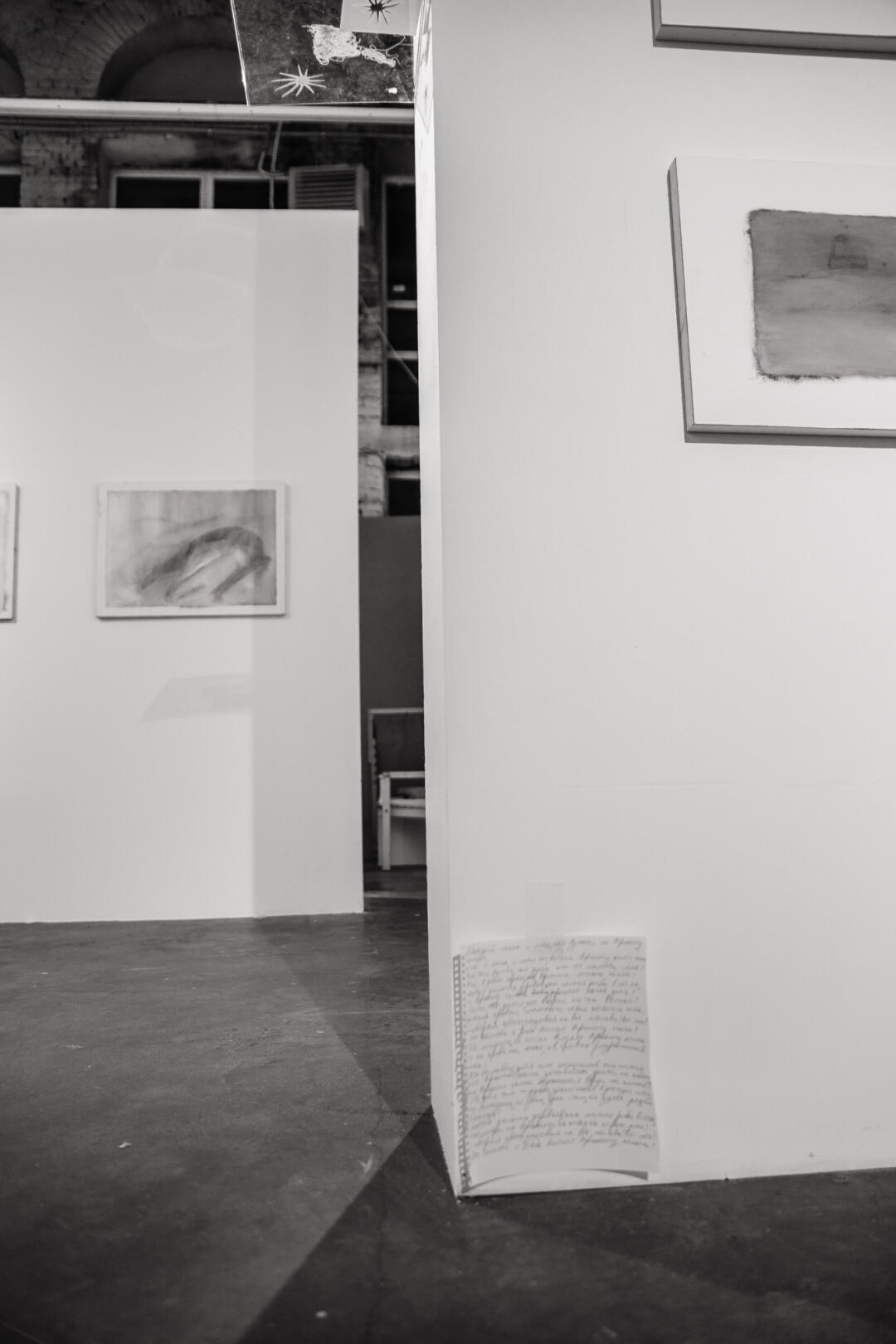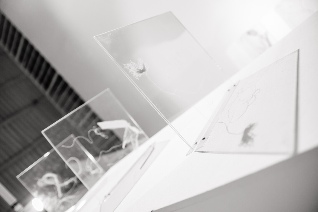 Не можем не сказать об организации экспозиции. Аплодируем и художнику, и кураторам, архитектору проекта (Майя Ковальски и Диана Жегалова). Они уделили особое внимание теням и их построению, расположению текстов. А еще! Подобрали, кажется, идеальное музыкальное сопровождение — альбом Ravedeath канадского музыканта Тима Хекера. Эмбиент, вводящий в транс. Он дополняет работы. Заставляет их еще больше «давить», «затягивать». Да, это дополнительное напряжение, но ведь без него в данной теме невозможно. Все пазлы сошлись.