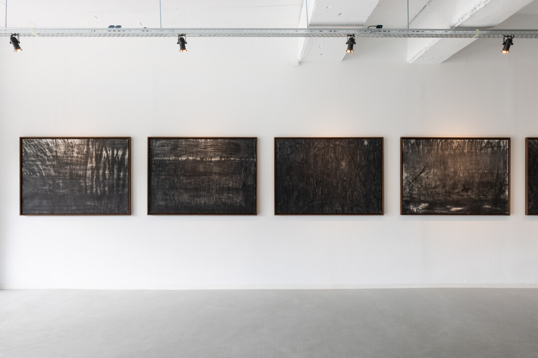 Экспозиция, подготовленная Artwin Gallery (Москва) при поддержке известного коллекционера Зои Галеевой, включает семь графических работ, созданных при помощи сажи и воска, два деревянных объекта, один мурал (тот самый) и одну фотодокументацию загородных рисунков и инсталляций.