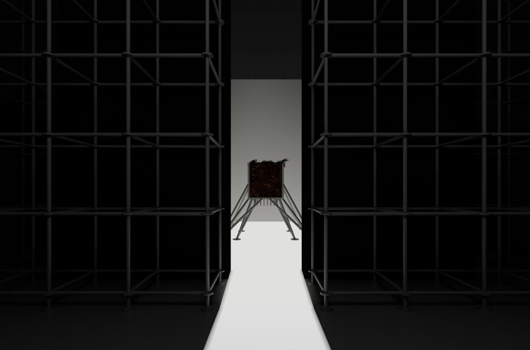 От кураторов проекта: «"Инсталляция 3" является центральным объектом выставки в Мультимедиа арт-пространстве ЦЕХ *, которое благодаря нижегородскому архитектурному бюро MISH studio превратится в футуристическую лабораторию ученого, напоминающую чистое космическое пространство для эксперимента, контрастирующее с "земной" сутью болот! Василий Кононов-Гредин создал конструкцию, которую позиционирует как экзоскелет для кубического метра Васюганского болота, покрытого мхом-сфагнумом. В этой технологичной структуре обеспечивается функционирование фрагмента болота вне его привычной среды. Эксперимент нацелен на исследование неочевидной особенности болота: в период экспонирования оно будет изменяться за счет углекислого газа, выделяемого дыханием посетителей, фактически сохраняя на своей поверхности отпечаток каждого из них, или память о них. Таким образом, объект будет метафорически демонстрировать идею о том, что каждое наше действие, даже самое незначительное, влияет на природу».