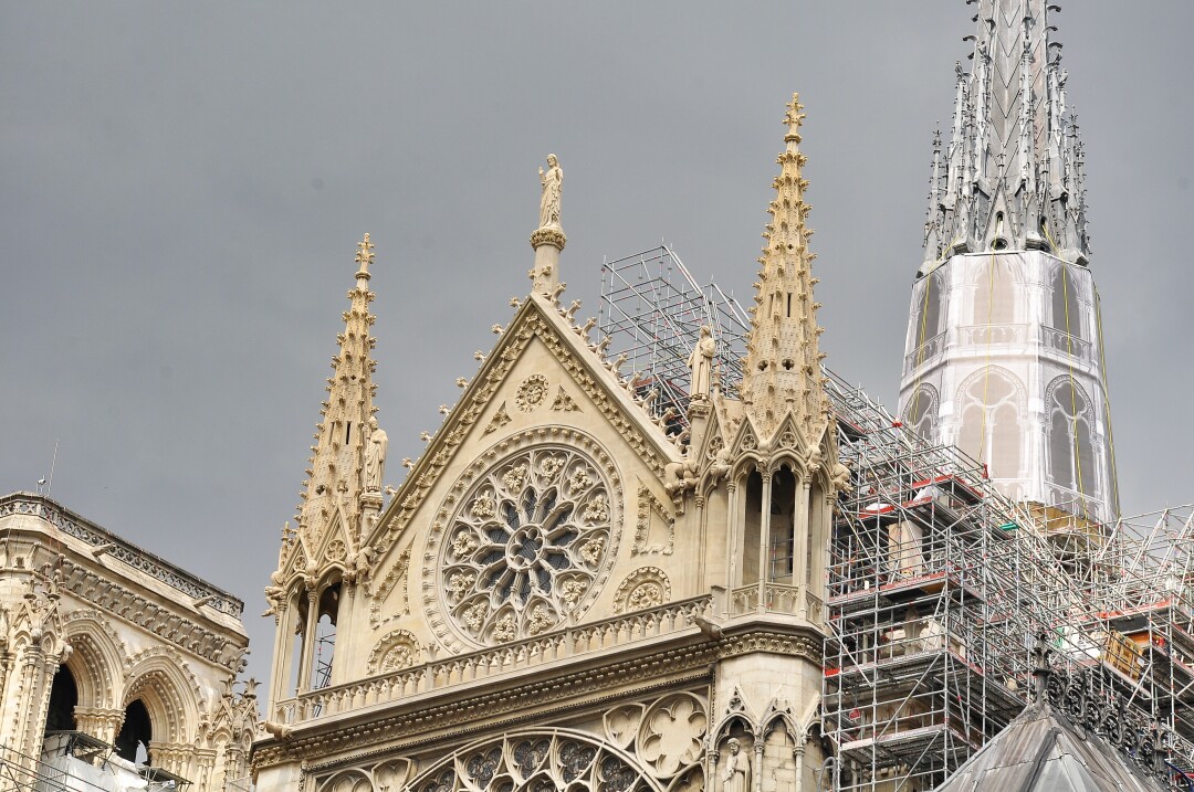 Собор Парижской Богоматери закрыли для посещений после пожара 2019 года, уничтожившего крышу и часть интерьера.Полное завершение всех работ запланировано на 2029–2030 годы.