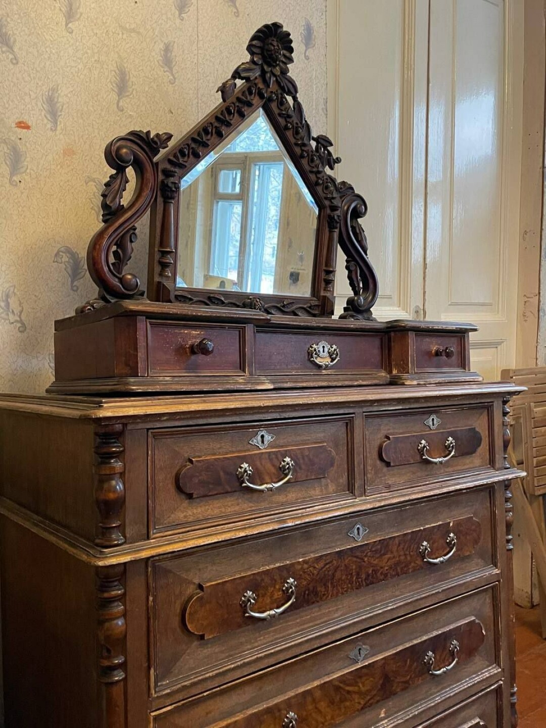 А этот столетний комод передавали по наследству в семье Капрановых. Их потомки и стали дарителями.