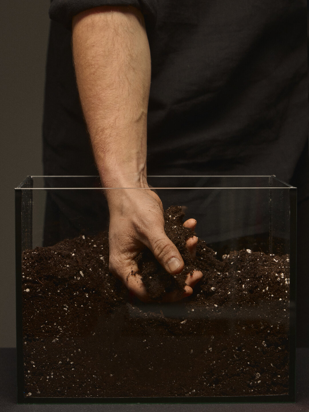 На выставке «Дикое подземное» будут представлены графика и скульптуры. Художник исследует границы темпоральности, используя свои излюбленные материалы – бетон и фанеру, которые по-разному ведут себя в соприкосновении с землей, разделяющей наш и потусторонний миры.
