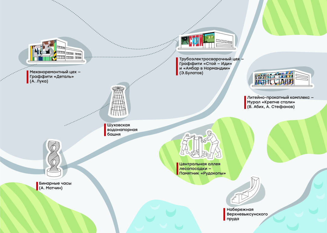 - «Шухов-парк» – индустриально-туристический центр, который строит компания ОМК на берегу рукотворного пруда – части гидротехнической системы заводов в XVIII веке. Кроме современных облагороженных территорий скоро здесь можно будет соприкоснуться с объектами индустриального наследия инженера Владимира Шухова. Их перенесут с заводской территории и сделают доступными абсолютно каждому.