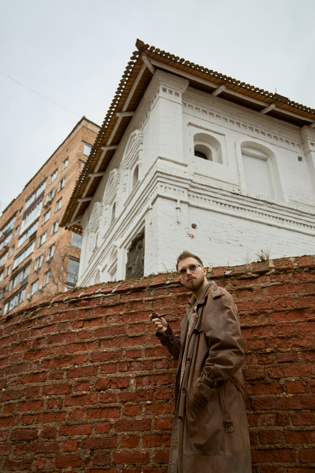 Фото сделаны во дворе одной из усадеб Трехсвятского квартала, а также рядом с палатами Чатыгиных (более известными как домик Петра). По не очень точным данным, когда-то в палатах останавливался Петр I. Это уникальный памятник каменной гражданской архитектуры XVII–XVIII вв. (таких строений в России осталось 20–30). Неподалеку, на Почайне, задолго до рождения Дани жила его семья. В этих же местах он проводил много времени в студенчестве и «через них узнавал город, его энергию и дух».