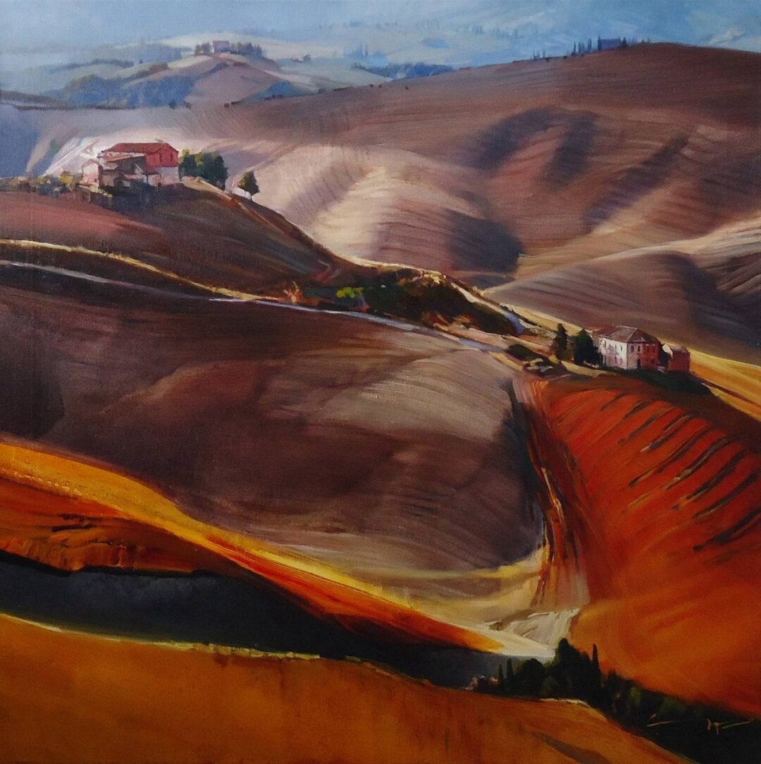 Анастасия Чувахлова, куратор выставки: «Каждое произведение, сохраняя свою автономность и концептуальную завершенность, вступает в диалог с соседними работами, порождая новые смысловые контексты. Каждая картина ведет зрителя по сложному маршруту – от камерных, почти интимных размышлений на холсте к масштабным высказываниям общественного звучания, создавая эффект тотального погружения в художественную вселенную мастера. Мне особенно понравилась серия «Холмы Тосканы». На мой взгляд, они напоминают обстановку книги «Дюна». Чувствуется некая фантастичность. Еще особо полюбилась картина «Ветер в парусах». Ее художник написал со своей дочери. Работа получилась очень нежная, трогательная, сказочная. Она напоминает мне Ассоль из произведения Грина».