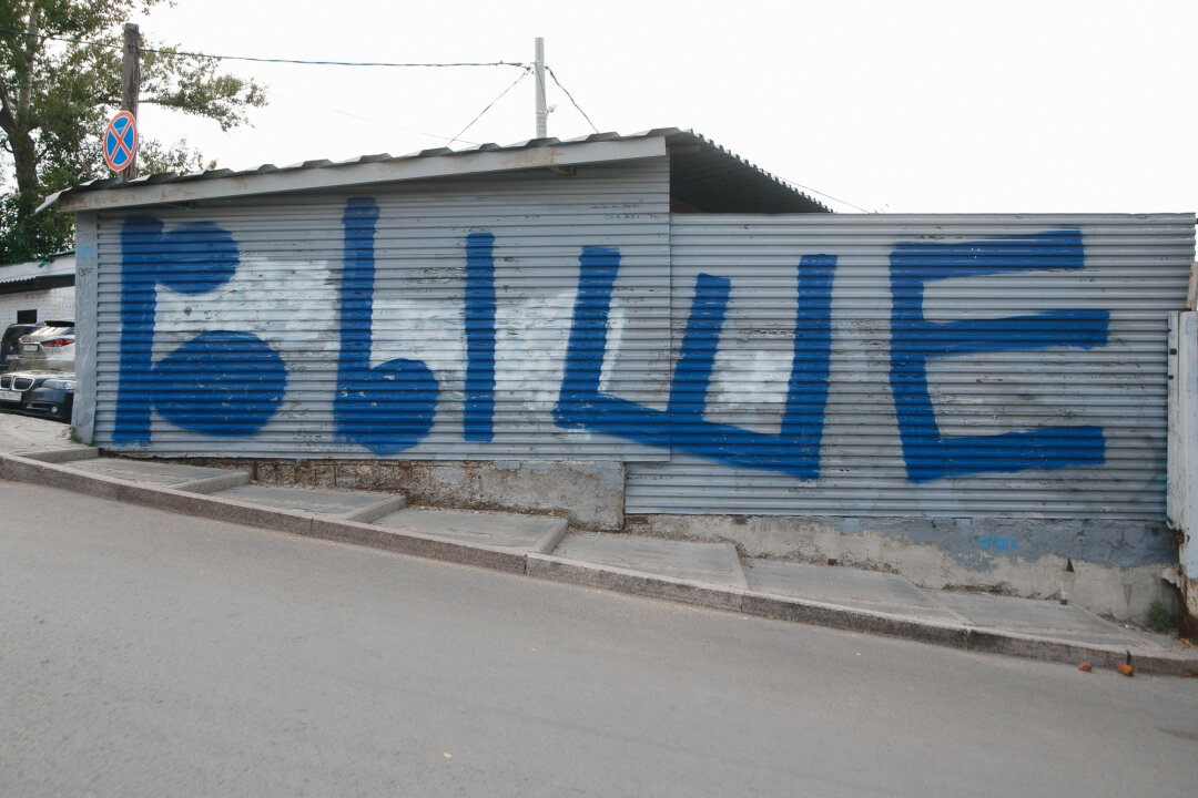 Его надписи легко узнать по фирменному синему шрифту и лаконичной манере осмысливать события и состояния. Составили небольшой маршрут по не самым очевидным, но значимым работам, и попросили автора немного рассказать о них.