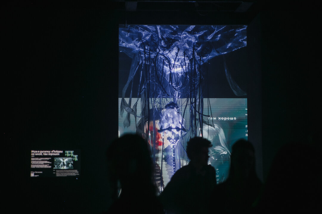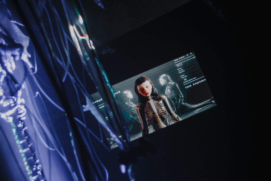 Цель авторов – переосмыслить «медиумы через призму и ретроспективу художественного архива»; у нас была цель – освободиться от чар (произошло 20-минутное залипание всех наших клавиш!) гипнорусалки-призрака из компьютерной игры, созданной Юлдус Бахтиозиной. Гейм-нарратив своей инсталляции-перформанса художница и режиссер конструировала с помощью нейросетей в течение месяца.