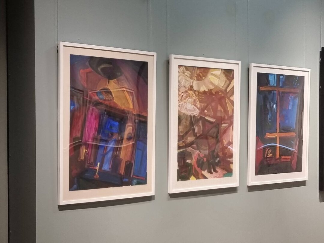 Среди участников, например, художник-график и живописец Ольга Лагеда (а еще театральный декоратор), которая принесла на выставку маленькие миниатюры с использованием цветных пластиков – монохромные вещи, окрашенные театральными фильтрами для софитов.