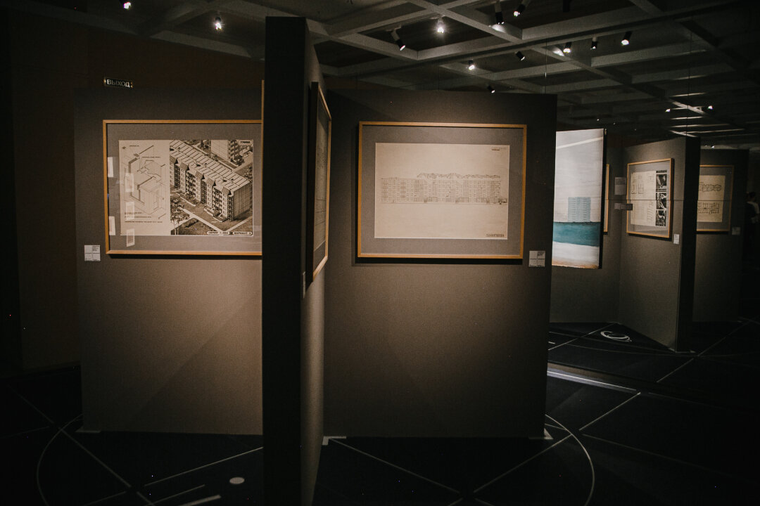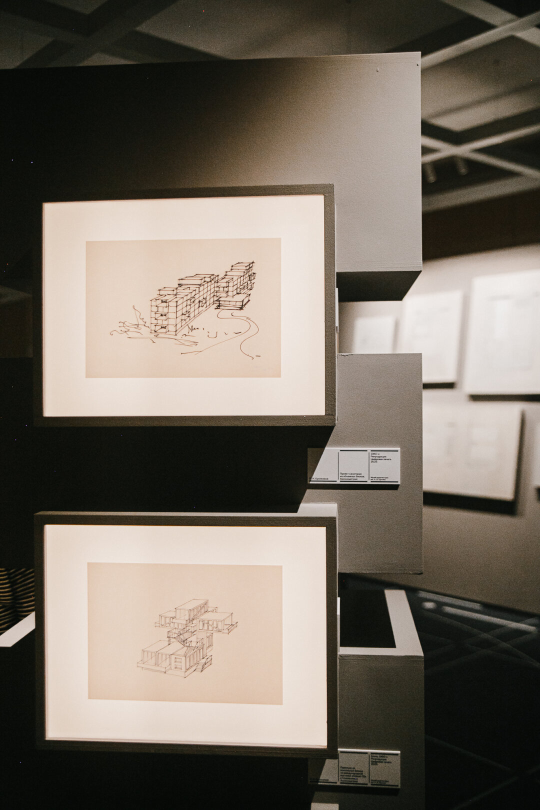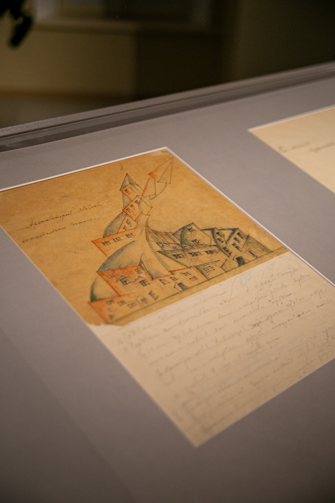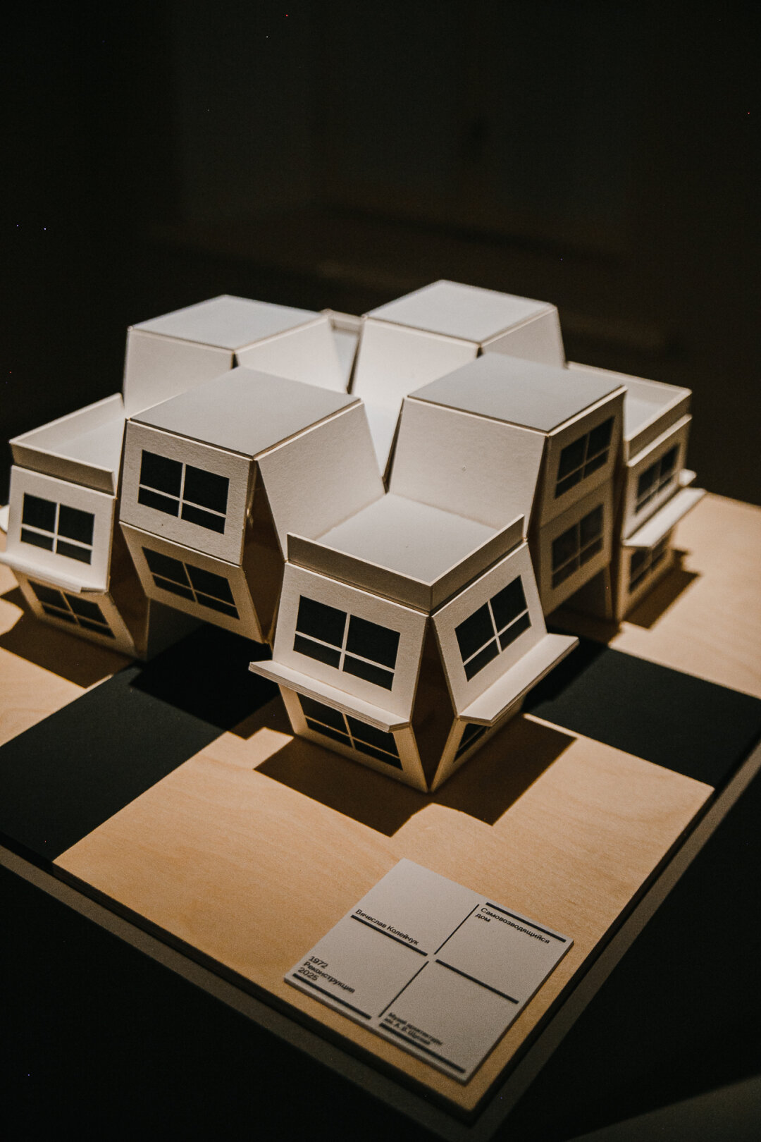 В зале музея ВМЗ устроили архитектурную лабораторию, в которой чертежи и эскизы первых панельных домов соседствуют с работами авангардных художников и их видением идеального жилища.