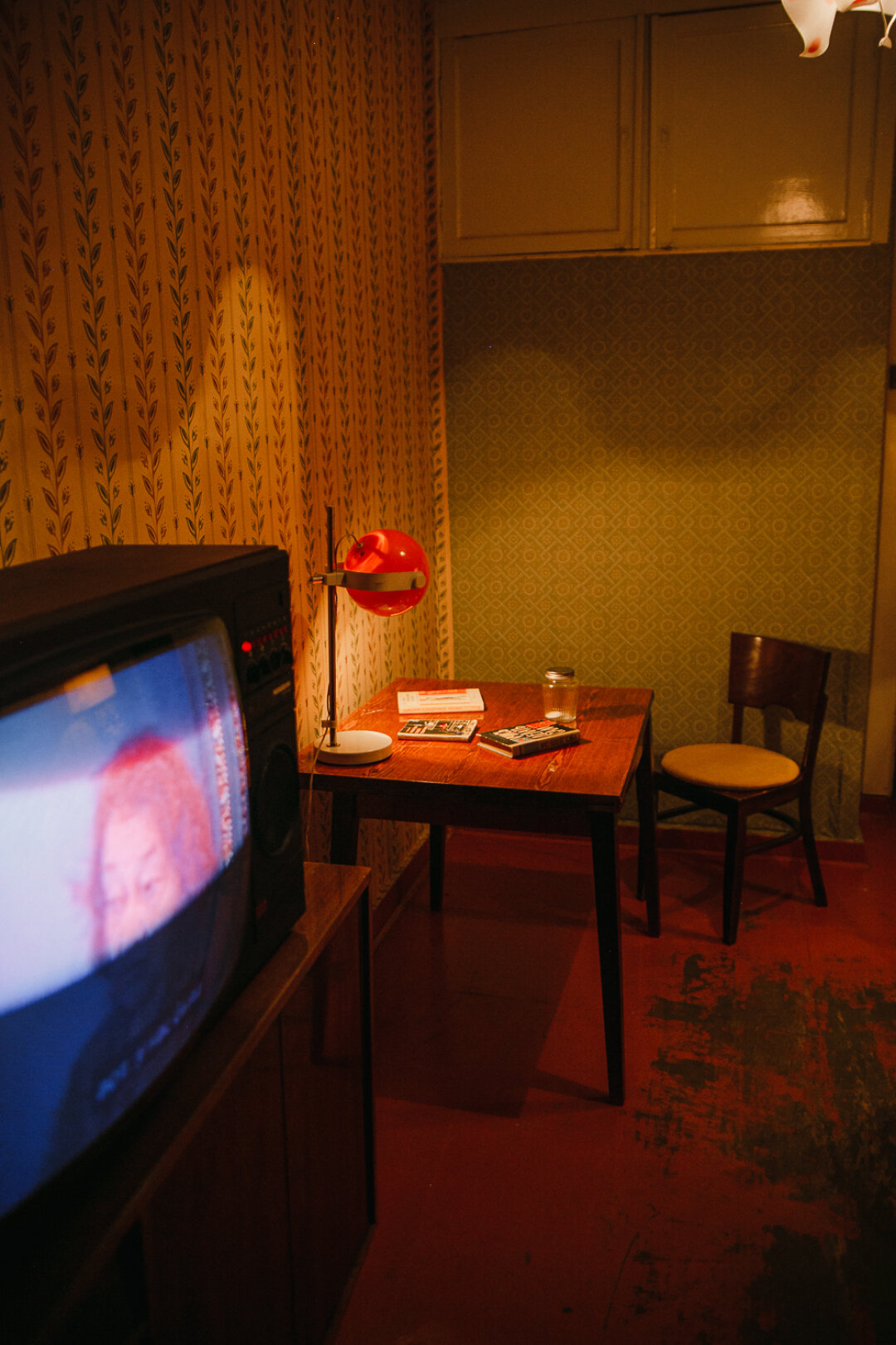 Натурная часть экспозиции проходит в самом первом панельном доме, возведенном в 1958 году. Двухкомнатная квартира приглашает прочувствовать эпоху и понять бытоустройство «человека советского»: в зале книжный стеллаж с самоучителями по сборке мебели, в спальне «пузатый» телевизор (крутят интервью с бывшими жителями дома), на кухне из настенного радиоприемника доносятся новости о достижениях местных производственных коллективов.