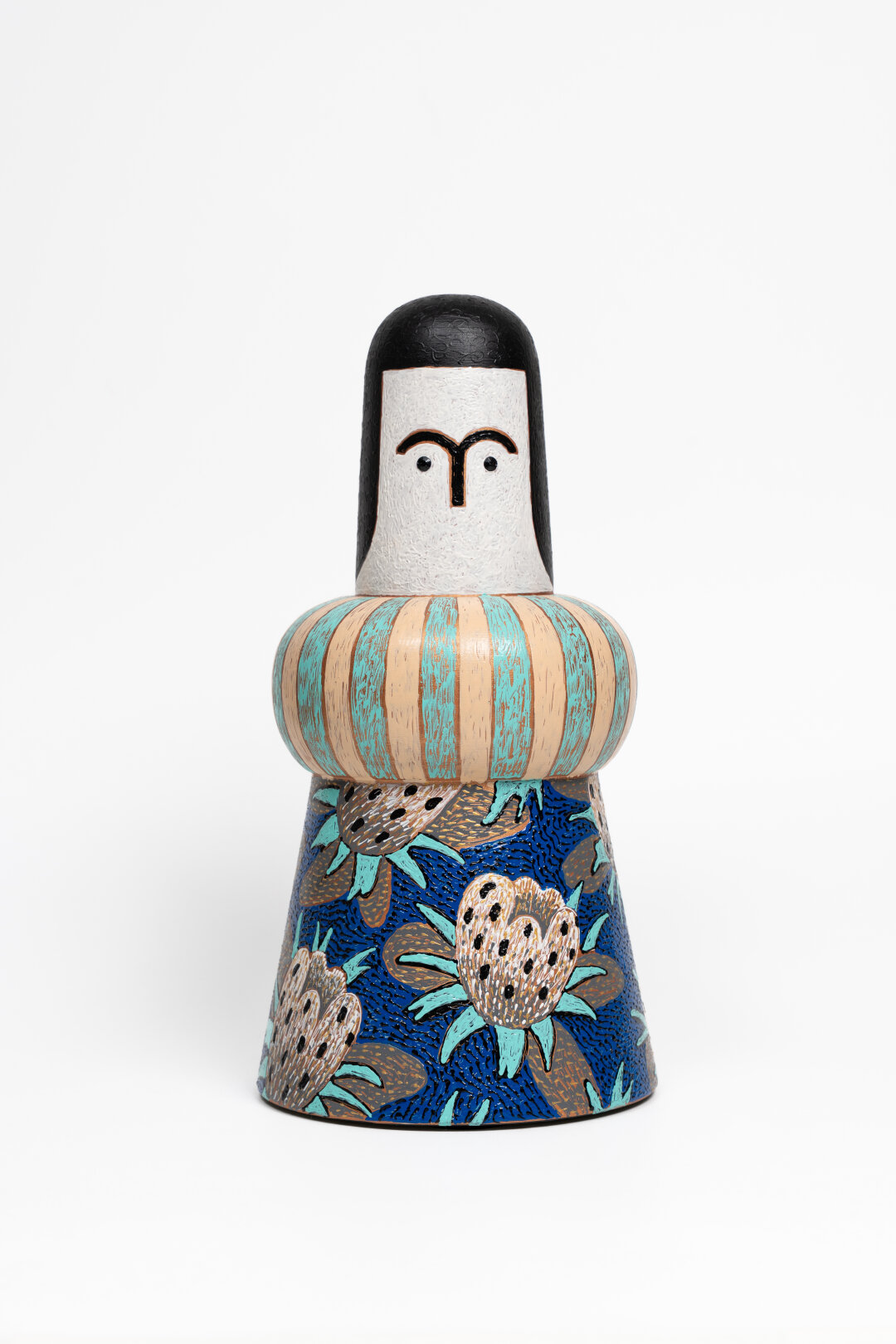 Кстати, несколько работ Евгении сейчас можно найти на большой выставке (56 авторов!) нижегородского искусства в Музее Фаберже в Санкт-Петербурге. Среди них матра-медведь «Зверь»; матра «Яркий подол» – женский персонаж, заключенный в деревянной высокой форме с графичным рисунком (призывает к интересной и насыщенной жизни!), а, кроме того, знаменитая парная матра.